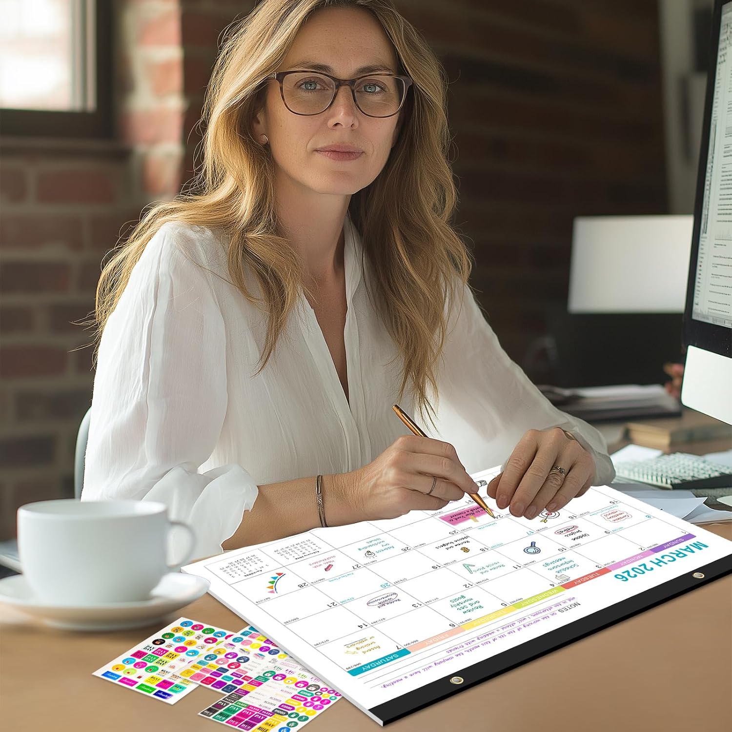 - 📔【For Wall/Fridge/Desktop】Yearly 2026 calendar comes with a magnetic strip, a hanging string and 3 stickers. It can be placed not only on the desktop, but also on the wall and refrigerator, Stickers help you plan your life better. In addition, the cutting line allows you to easily tear off the pages of each month