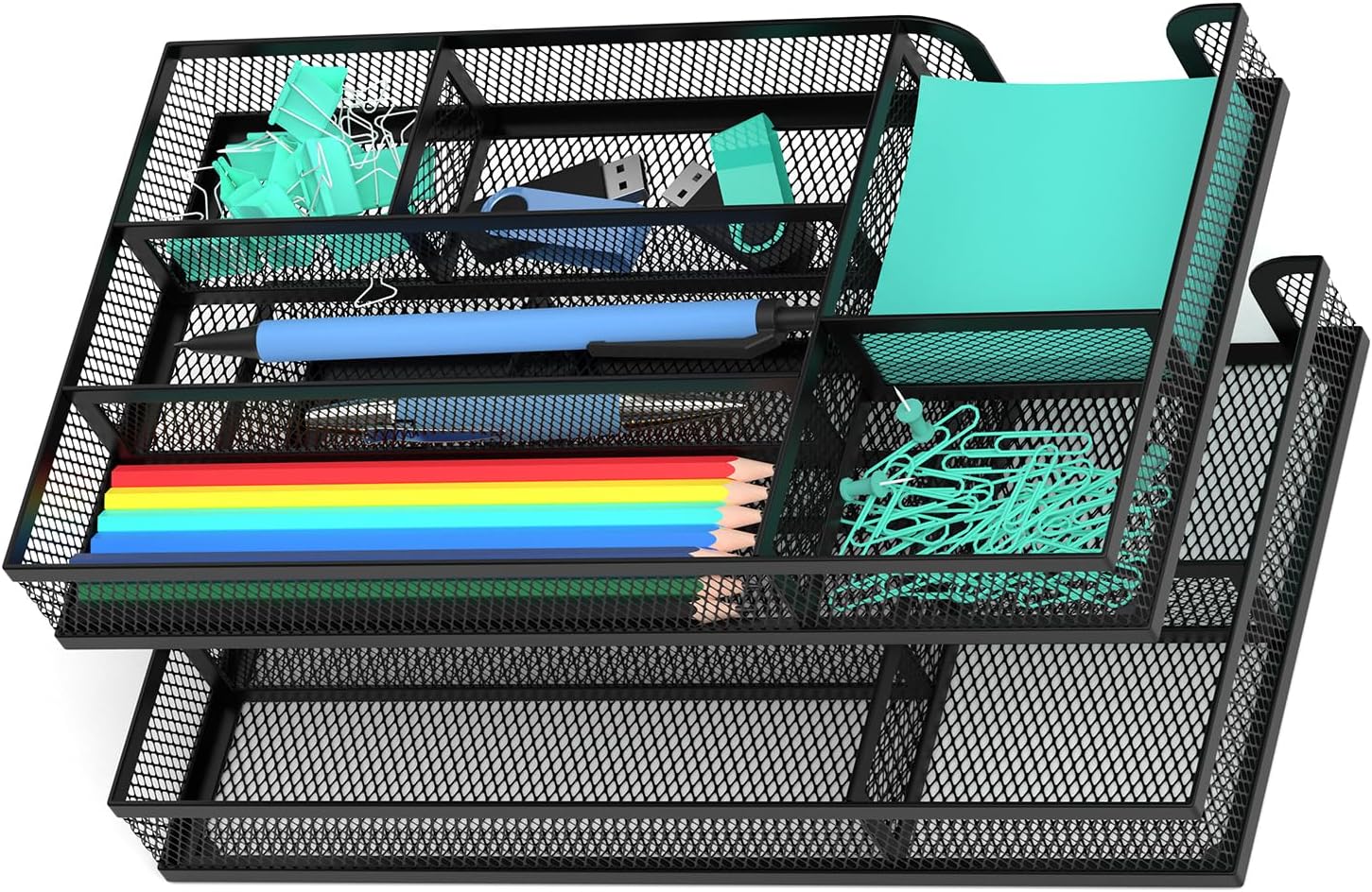- Efficient Organized: Design with 6 compartment for pens, pencils, glue, sticky notes, allows to save space and keeps your drawer and desk organized and neat.
