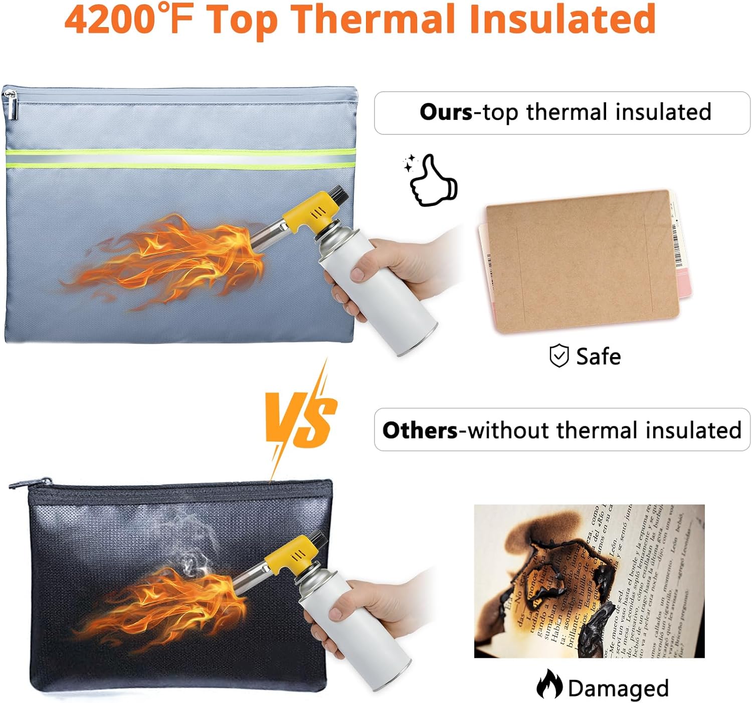 - Lightweight, Portable & Multi-Purpose: Designed for home, office, travel, and emergency preparedness, these fireproof document bags fit easily into safes, drawers, backpacks, and suitcases. Whether safeguarding your belongings from fire, floods, hurricanes, or theft, they provide peace of mind in any situation.