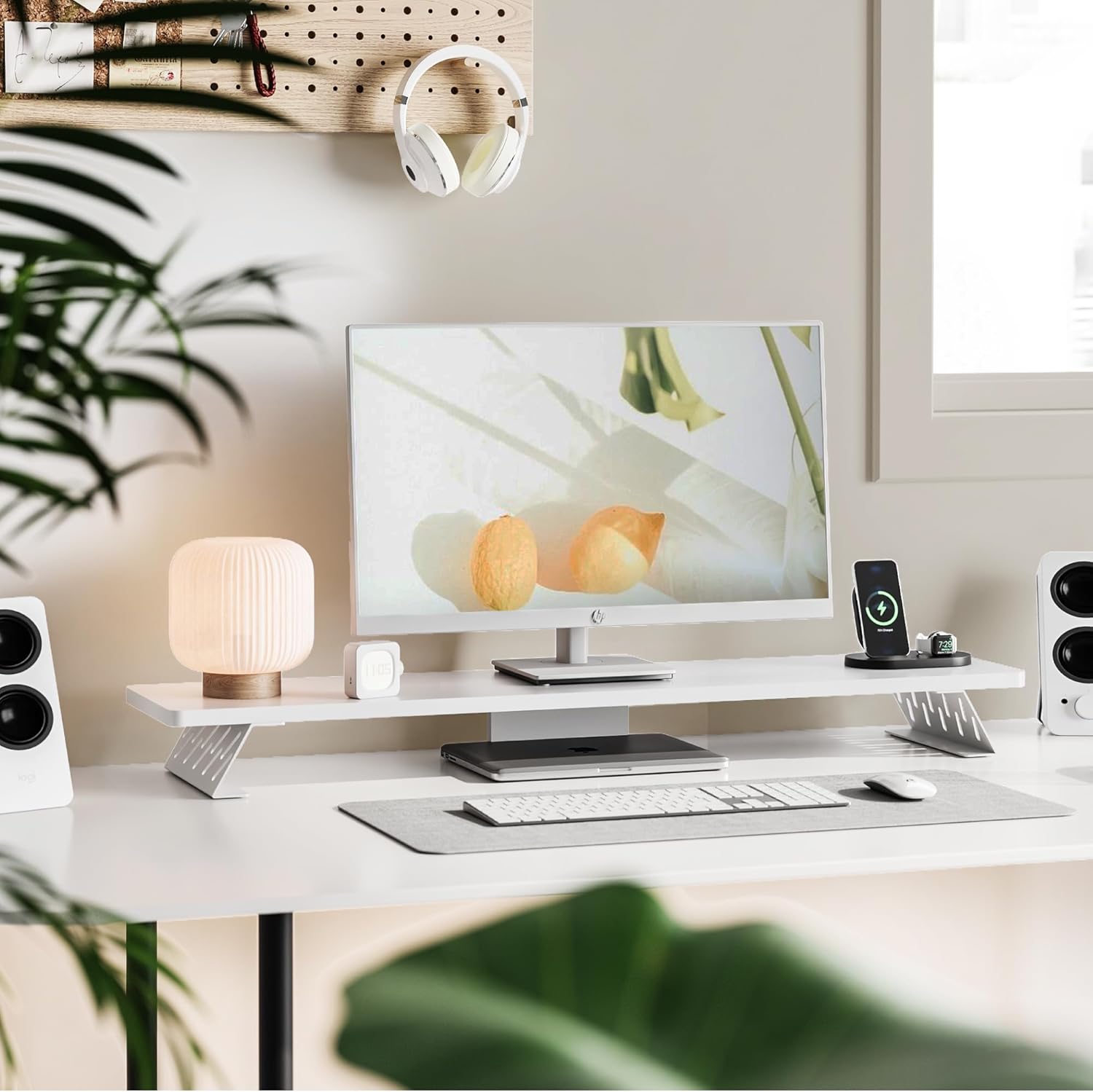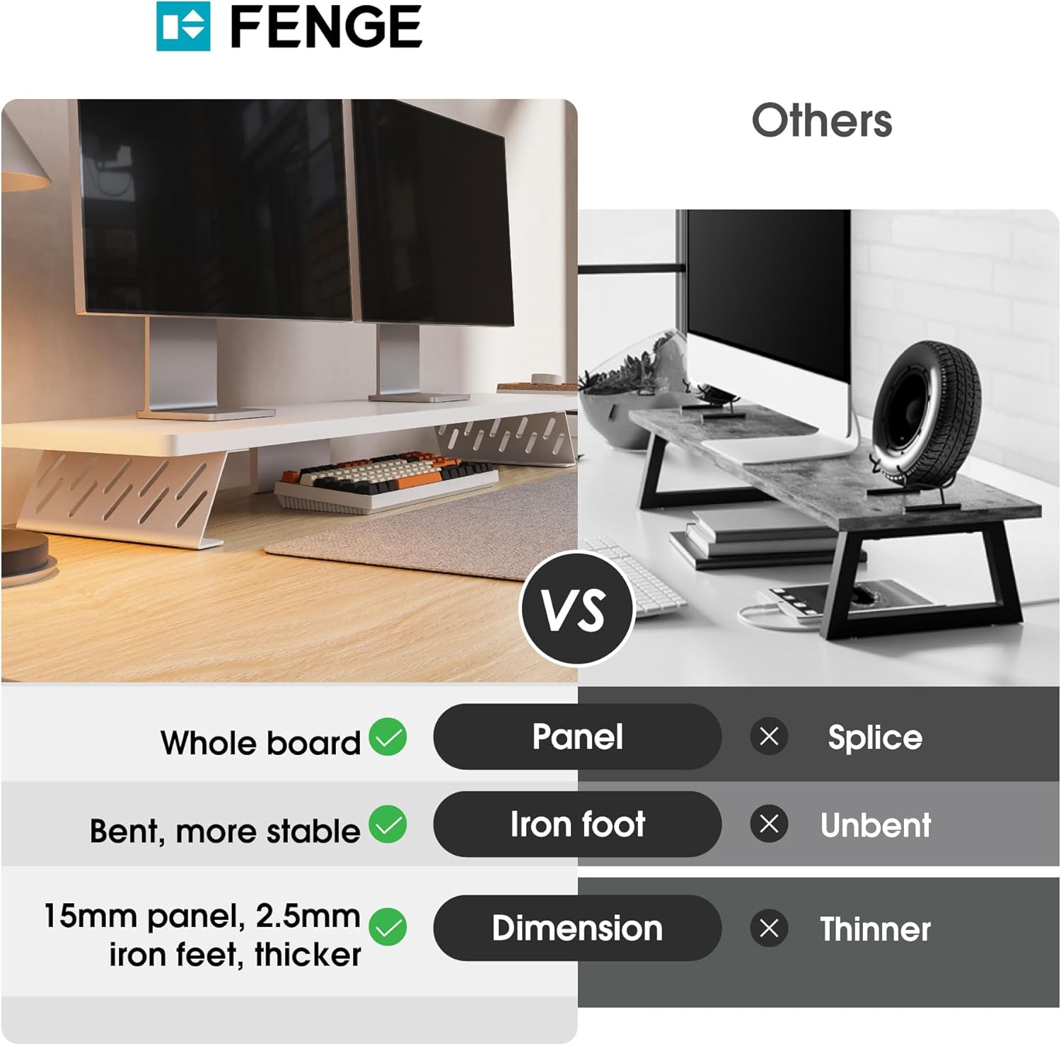 • 【Monitor Stand for Desk】To ensure fenge monitor stand can be used permanently, we have adopted high-quality thickened panels and metal legs. With heavy-duty steel base, so you don't have to worry about collapse or shaking during use. Each desk leg is equipped with a non-slip pad to prevent the table from being scratched. The maximum load-bearing of the monitor riser can reach 66 pounds.