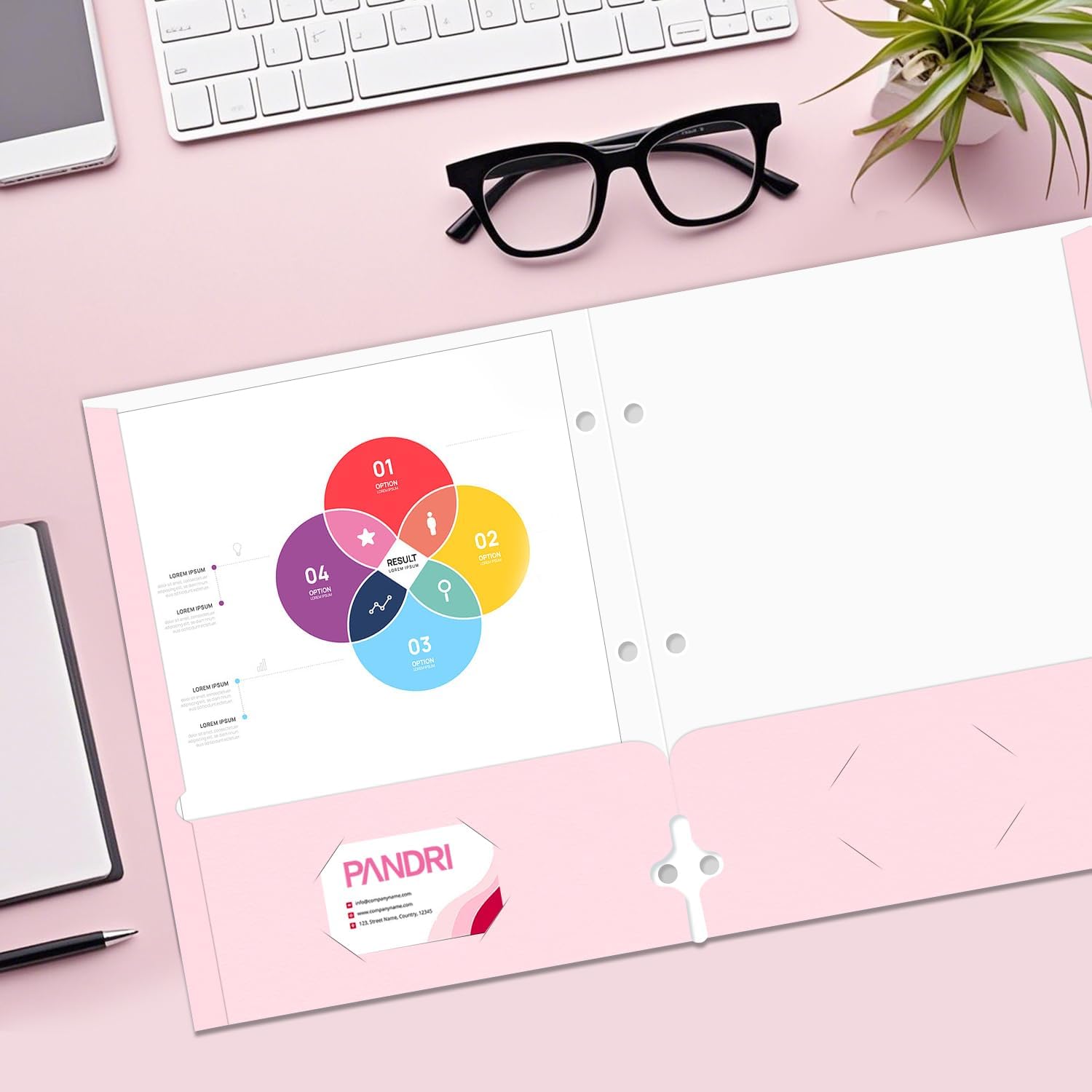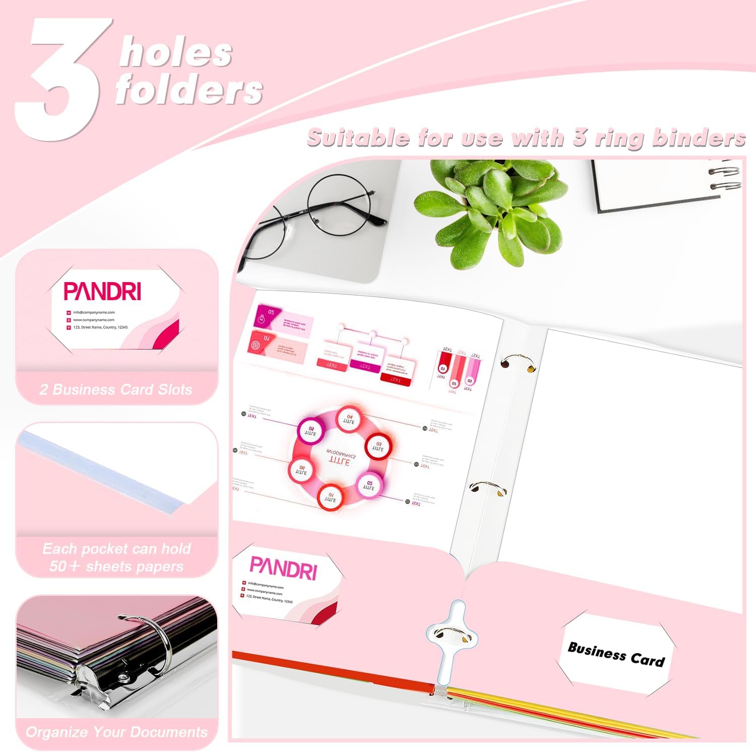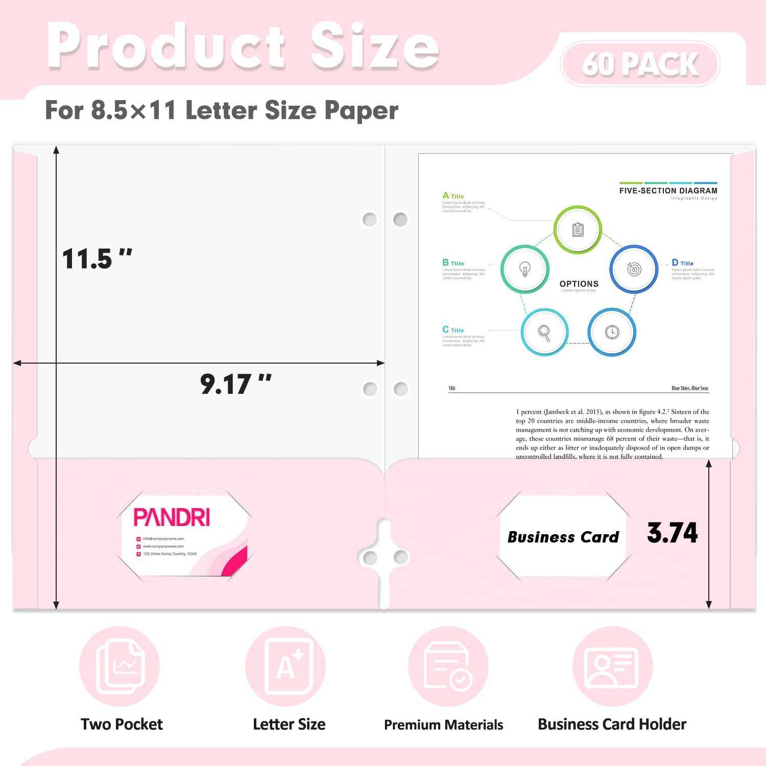Two Pocket Portfolio Folders, PANDRI 60 Pack 3 Hole Punched 2 Pocket Folders for 3 Ring Binder, Letter Size Paper File Folder for School Office Home Business, Pink
