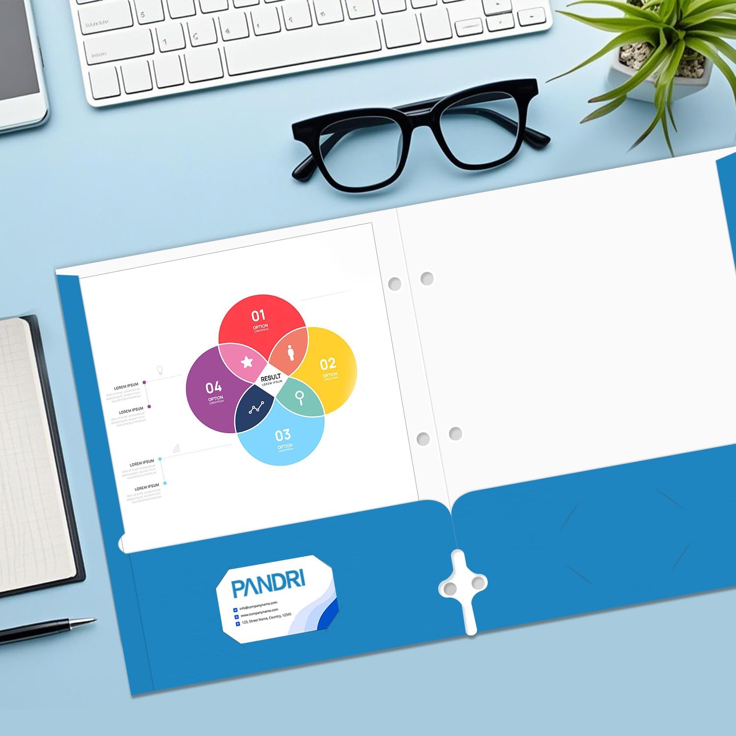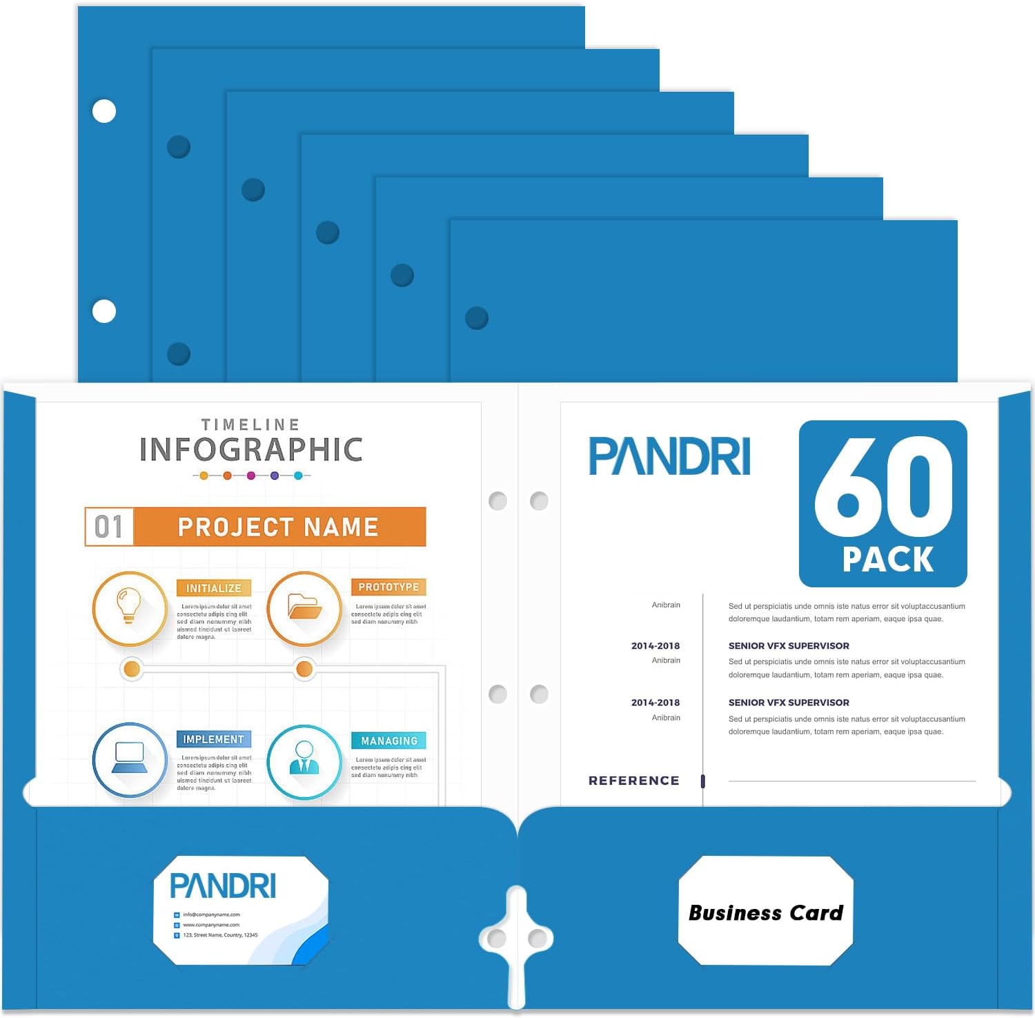 Two Pocket Portfolio Folders, PANDRI 60 Pack 3 Hole Punched 2 Pocket Folders for 3 Ring Binder, Letter Size Paper File Folder for School Office Home Business, Blue