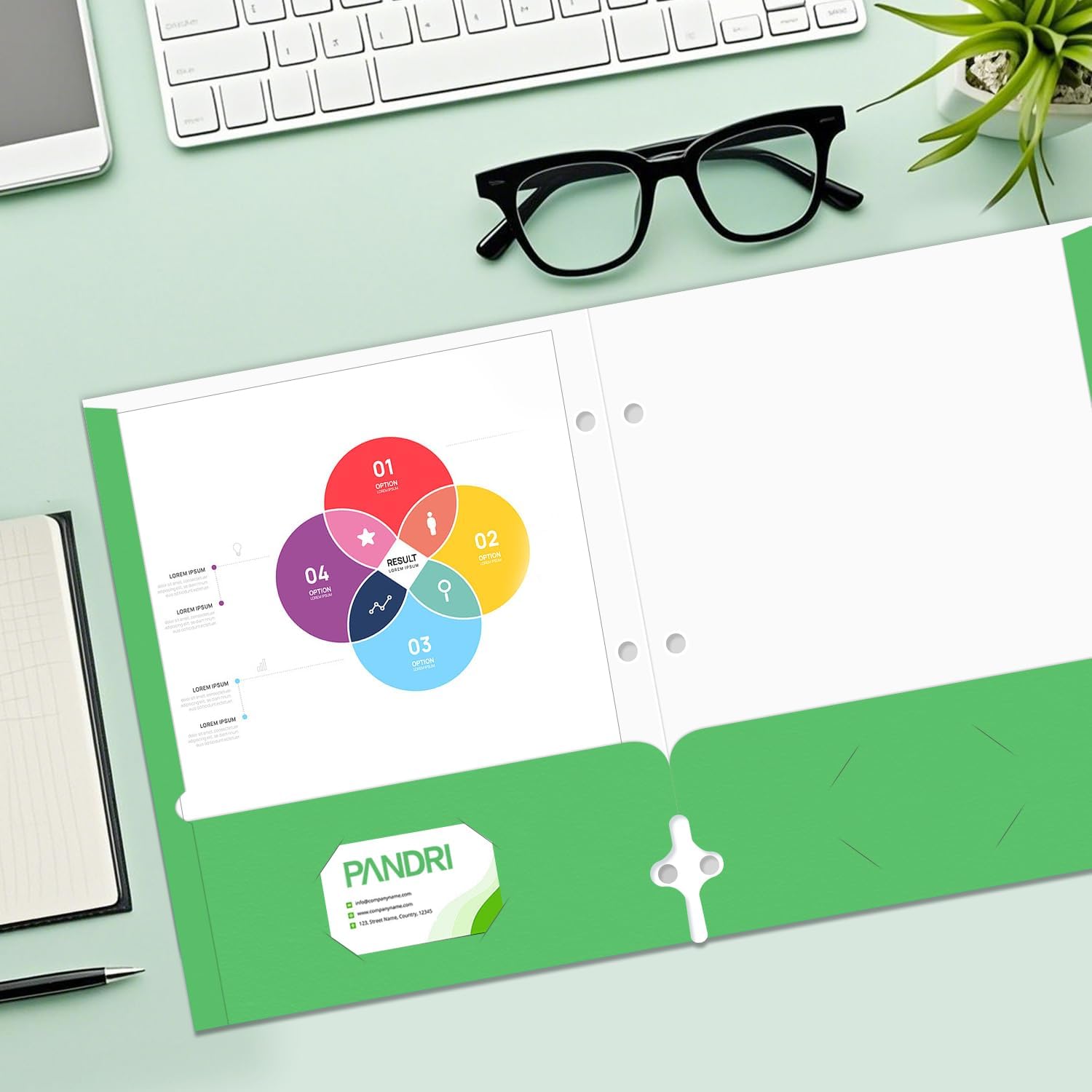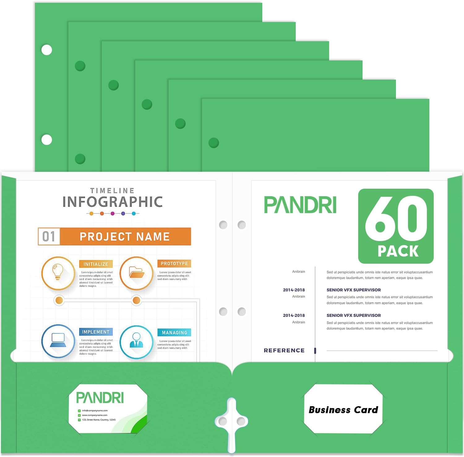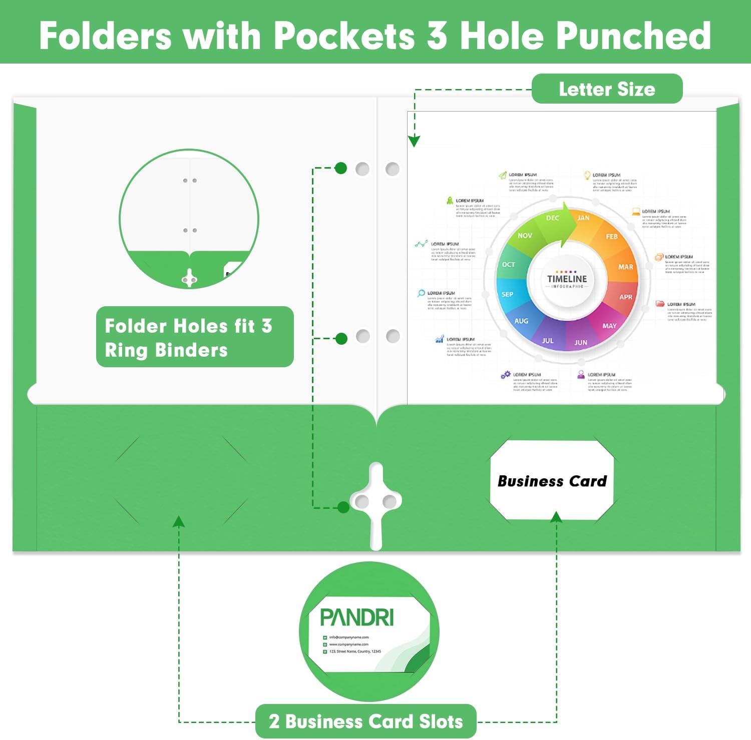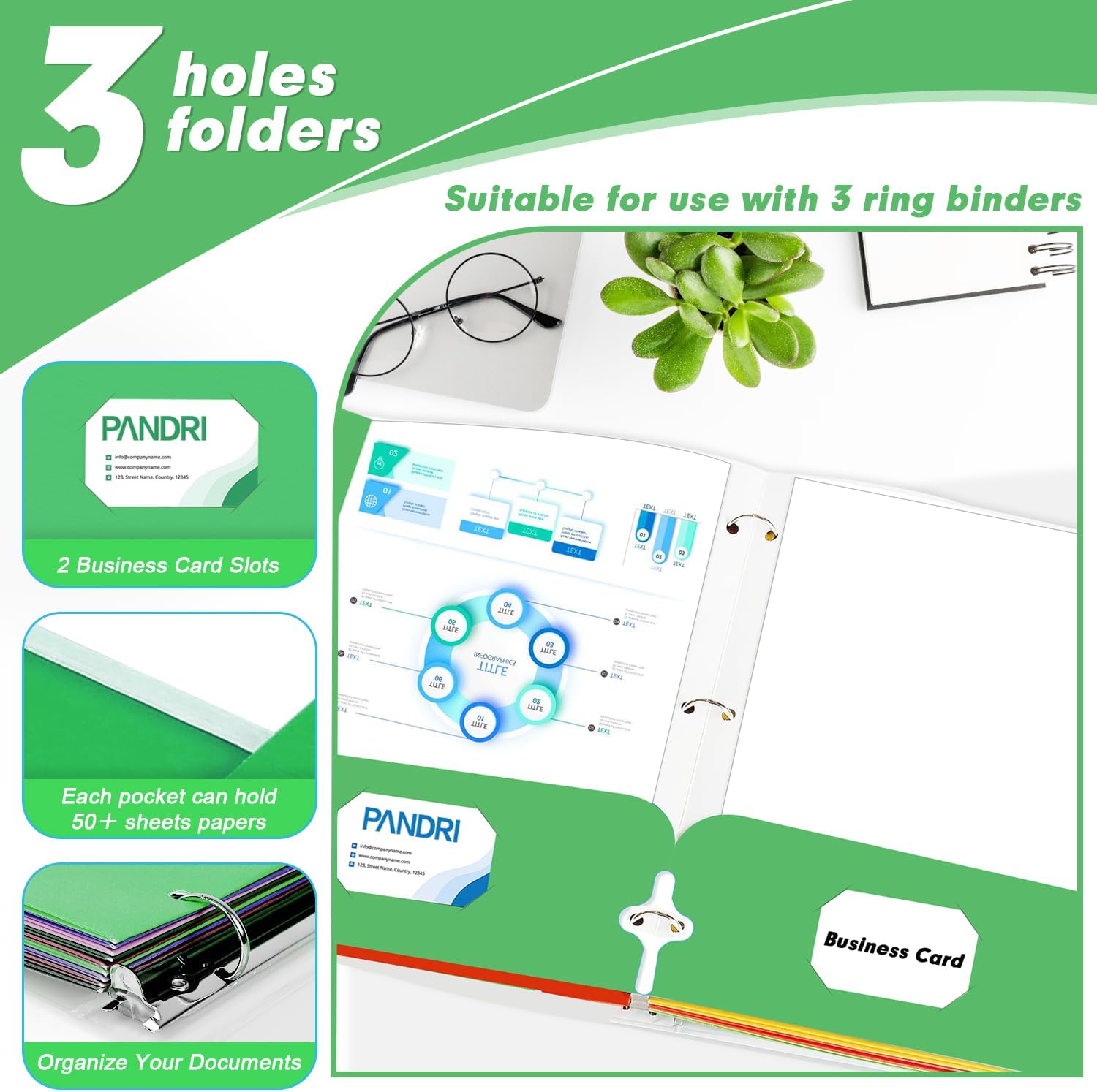 - Folder Design : Each folder has two die-cut business card slots suitable for storing business cards, and the folder with pockets also has three pre-drilled holes so you can easily punch holes for use with the 3-ring binder for convenient storage and management of your documents