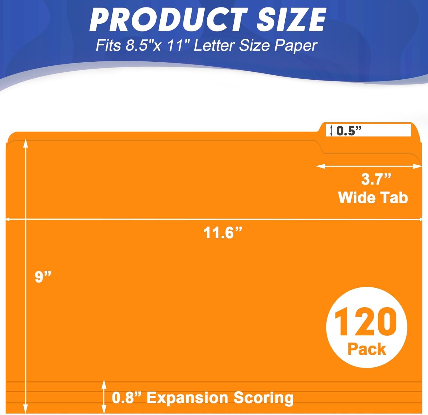 File Folder, HERKKA 120 Pack 1/3 Cut Tab File Folders, File Folders Great for Organizing and Filing, Letter Size, Orange