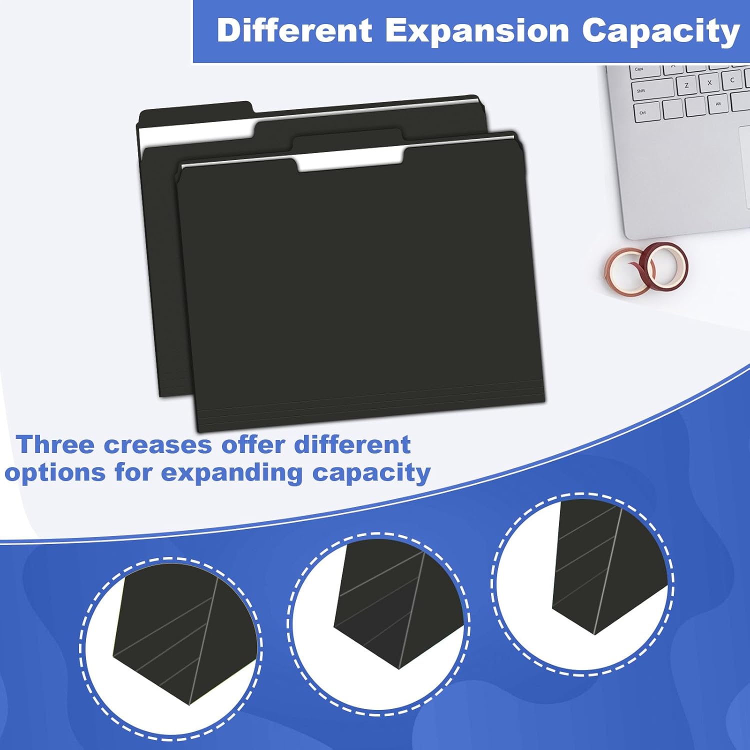 - ECONOMICAL & ECO-CONSCIOUS: Protect the environment by using tabs made with recyclable paper. Recyclable black filing folders (120-count) for neatly storing and organizing documents.