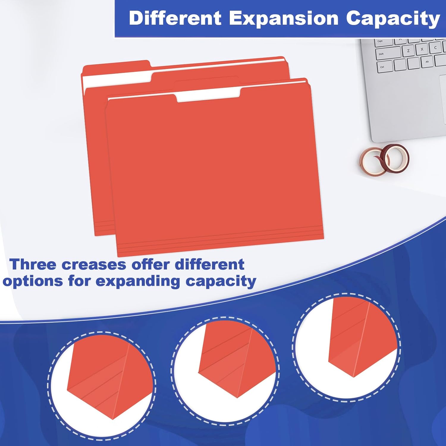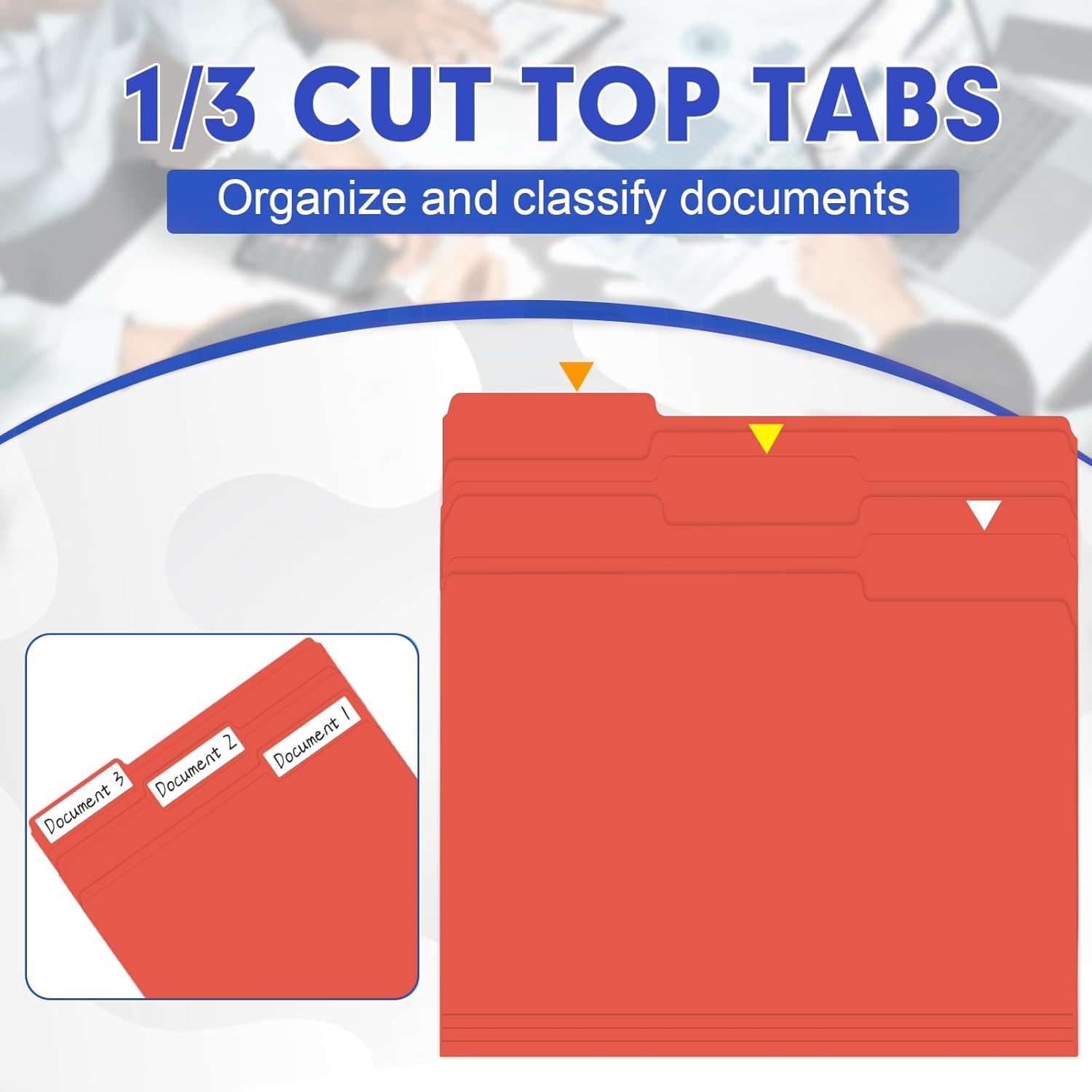 • ECONOMICAL & ECO-CONSCIOUS: Protect the environment by using tabs made with recyclable paper. Recyclable red filing folders (120-count) for neatly storing and organizing documents.