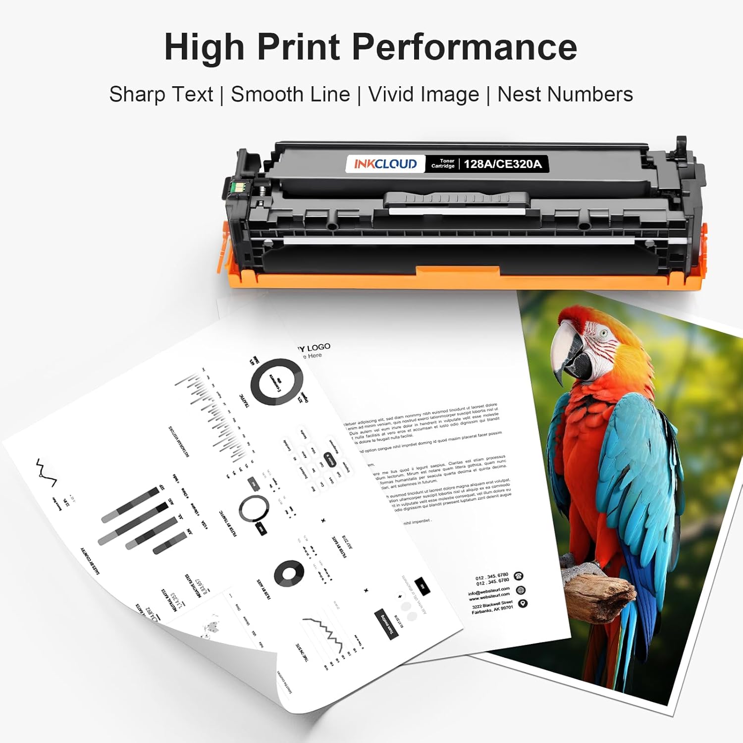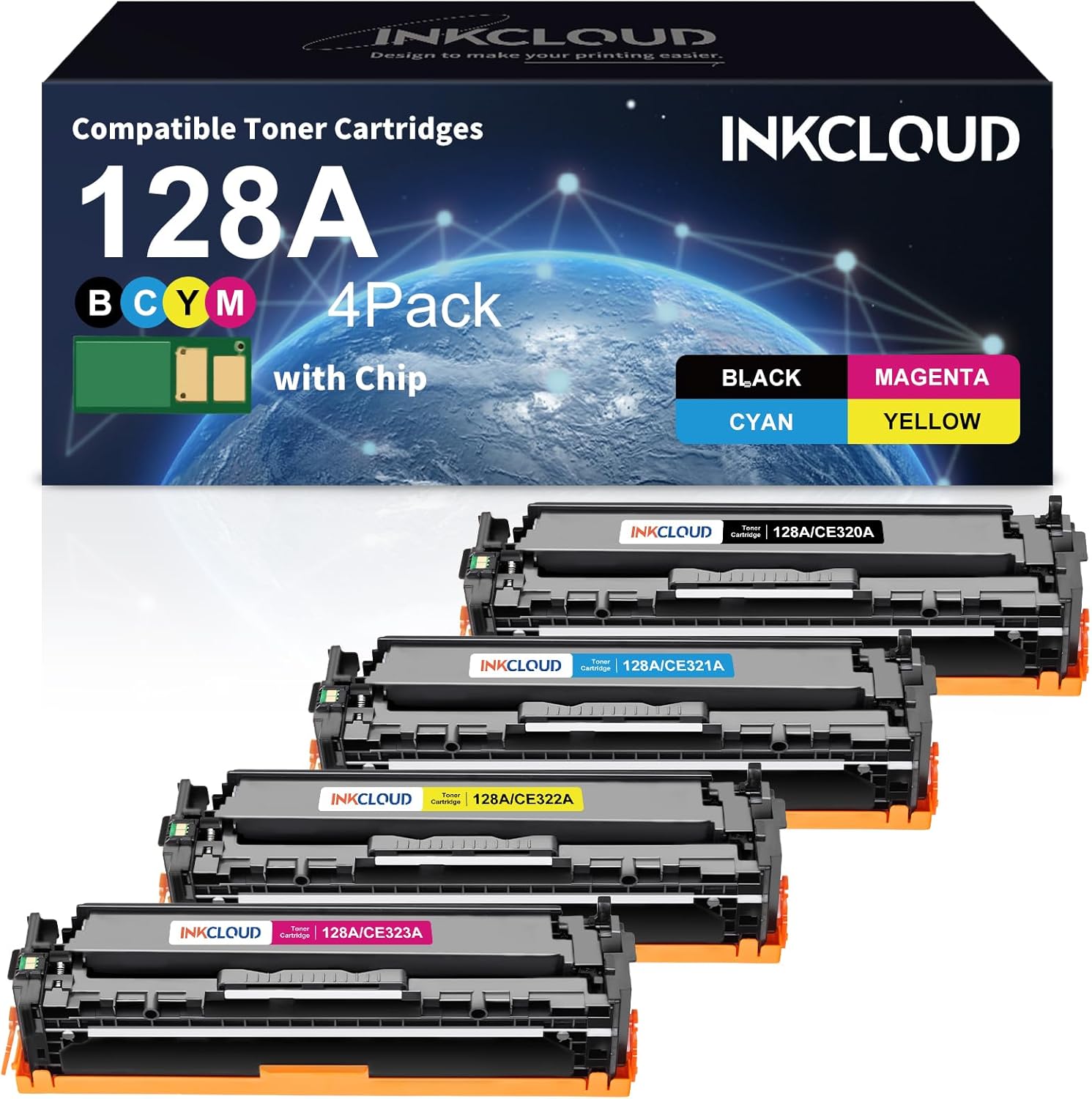 - Our 128A Toner Cartridges High Yield 4 Pack (with Chip) Compatible for HP 128A CE320A CE321A CE322A CE323A Work with HP Pro CM1415fn CM1415fnw CP1525n CP1525nw Printer.