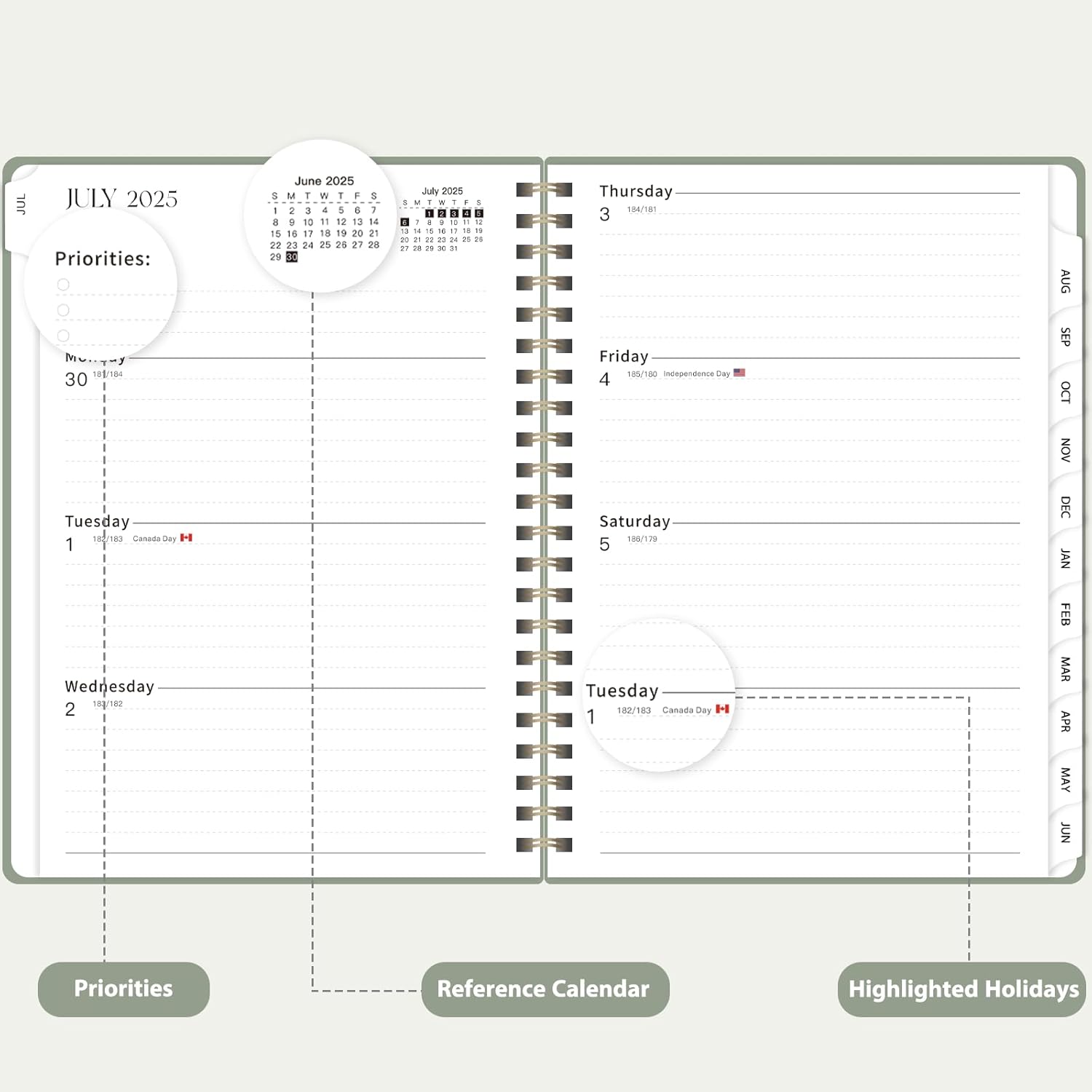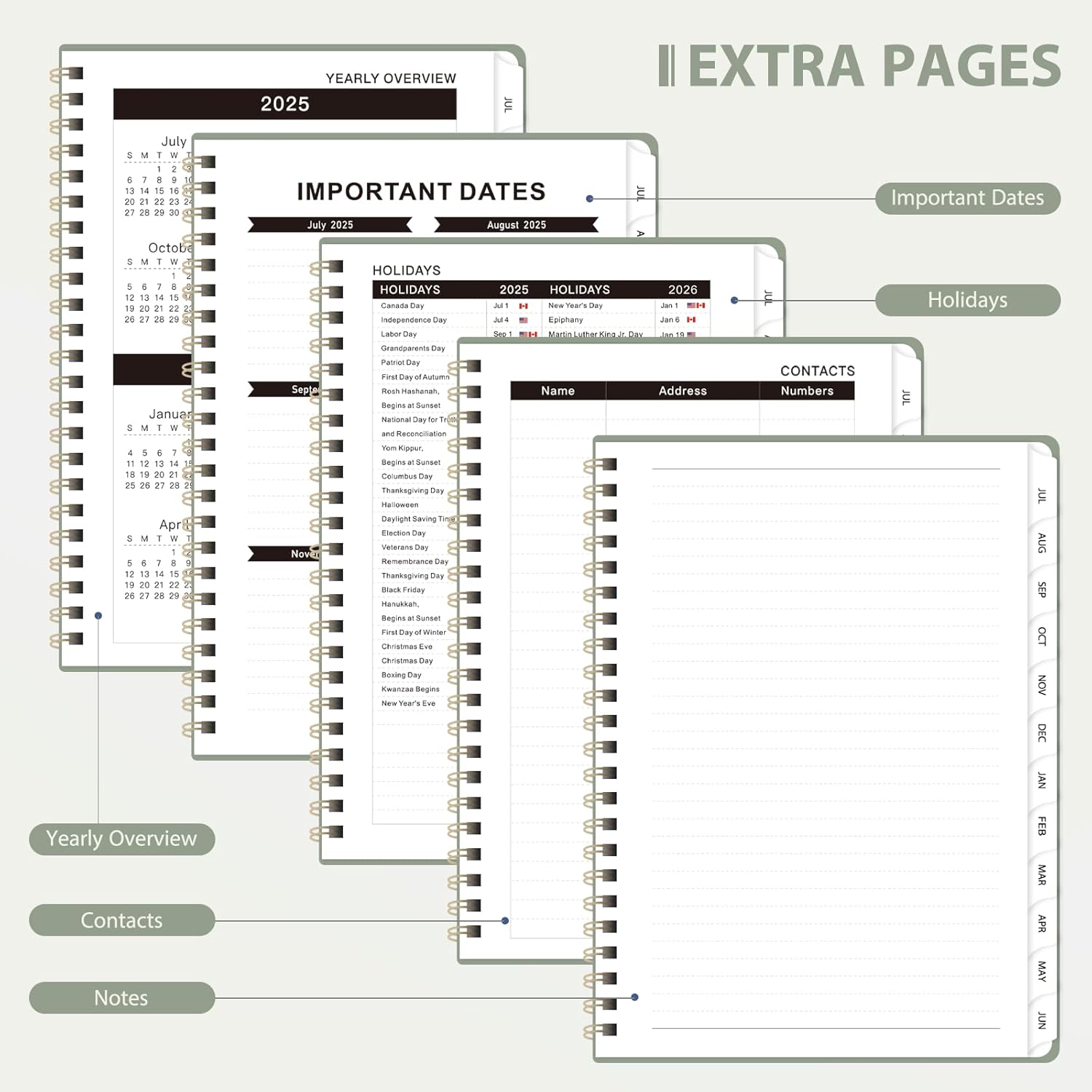 Planner 2025-2026 for Women & Men, Weekly and Monthly Calendar Notebook (July 2025 - June 2026), Hardcover Spiral Bound School Teacher Student Planner with Tabs, Inner Pocket, A5 (6.3" x 8.5")