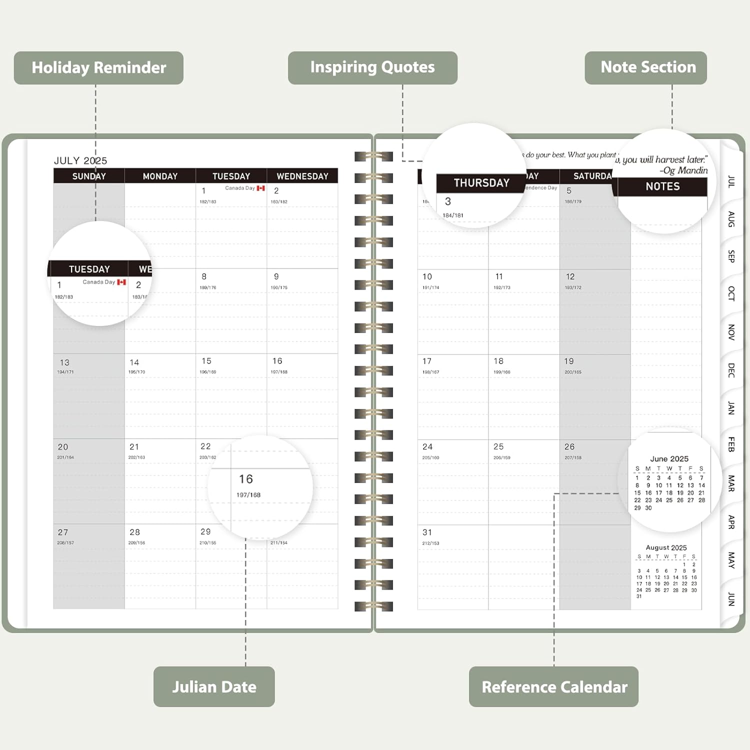 - [THOUGHTFUL DESIGN] β Printed on FSC-certified wood-based paper, our 2025-2026 calendar planner combines sustainability with smart organization. It features an elastic closure to keep it securely closed, monthly tabs for easy access, and a clear double-sided pocket for extra storage. Plus, each monthly page includes an inspiring quote to keep you motivated and focused.