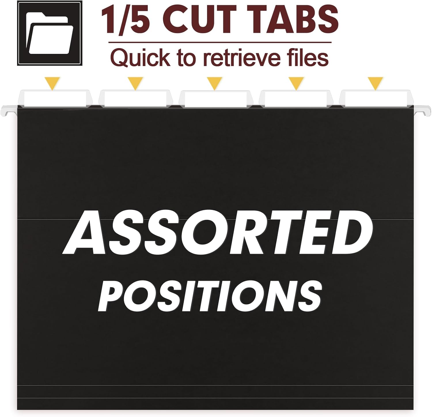 HERKKA Hanging File Folders, 60 Pack Reinforced Letter Size Hanging Folders, Designed for Bulky Files, Filing Cabinet, 1/5-Cut Adjustable Tabs (Black)