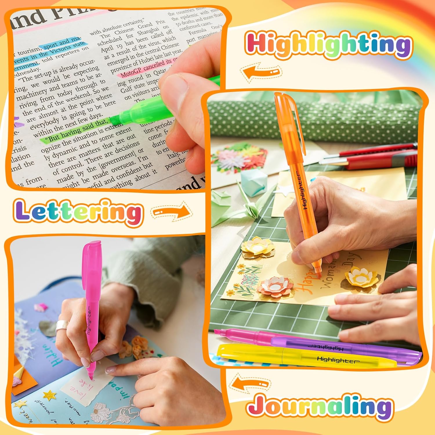 - Versatile Chisel Tip: Featuring a dual-tip design, these highlighters allow for both 1mm fine lines and 4mm broad strokes. Perfect for bold highlighting, precise underlining, writing, drawing, and marking key information.