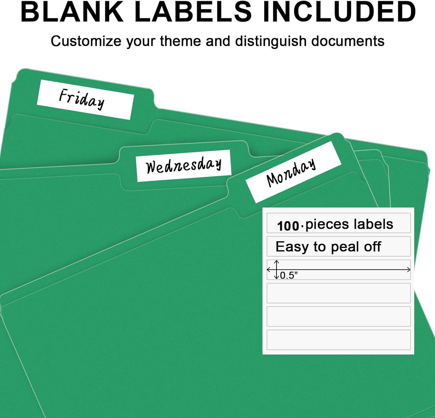 - PACKAGE INCLUDED: This bulk pack includes 100 letter size file folders (50 of each position) and 100 blank labels, idea for any home, office, or school project, providing you with plenty of storage space for all of your important documents