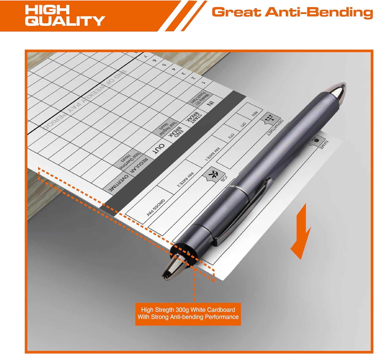 - higher quality:Crisp Print Quality from a Professional FactoryProfessionally manufactured with high-precision printing, these time cards feature clean lines and sharp formatting. Each punch lands clearly within the designated spaces, making time entries easy to read and calculate accurately