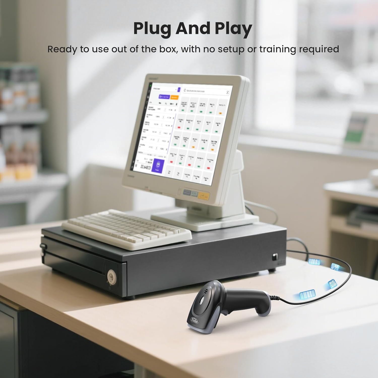 - 24-hours Non-stop Working: This wired barcode scanner is designed for continuous use all the day, no charging anxiety. and it's always ready for the next scan, and which significantly reduces downtime and repair costs, easily keep transactions fast and increased customer satis-faction. reliable all-day, and provide every day operation
