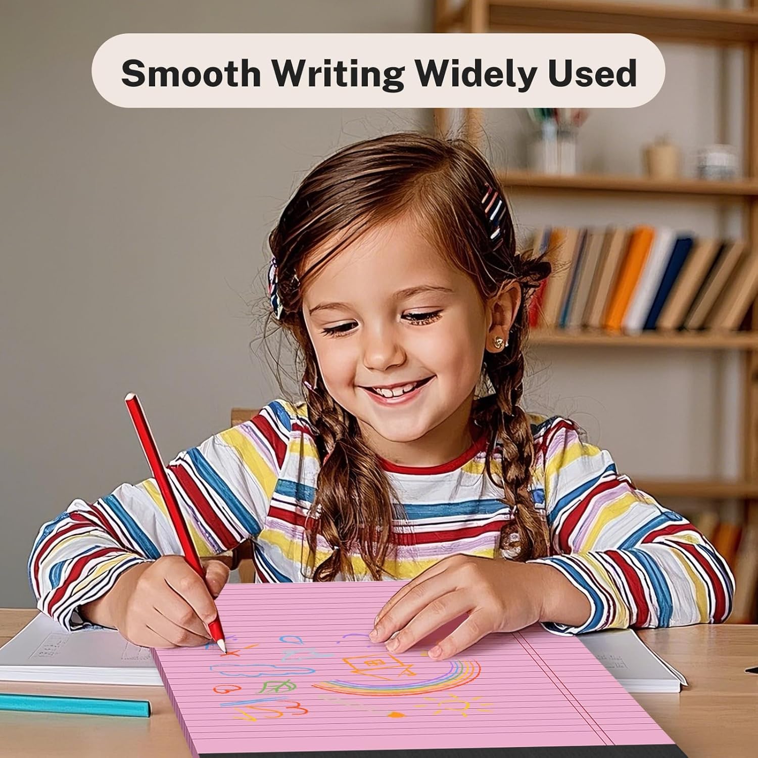 - 【 Strong Binding and Perforation 】The top of pink legal pad adopts a strong and easy-to-tear production concept, along the blacktop wrap line, you can easily tear off each page, and the paper is intact.Smooth and thickened colored paper allows your pen to slide easily across the paper. To prevent ink from oozing and spilling, our notepads 8.5 x 11 are thicker than regular notepads, giving you a luxurious writing experience.