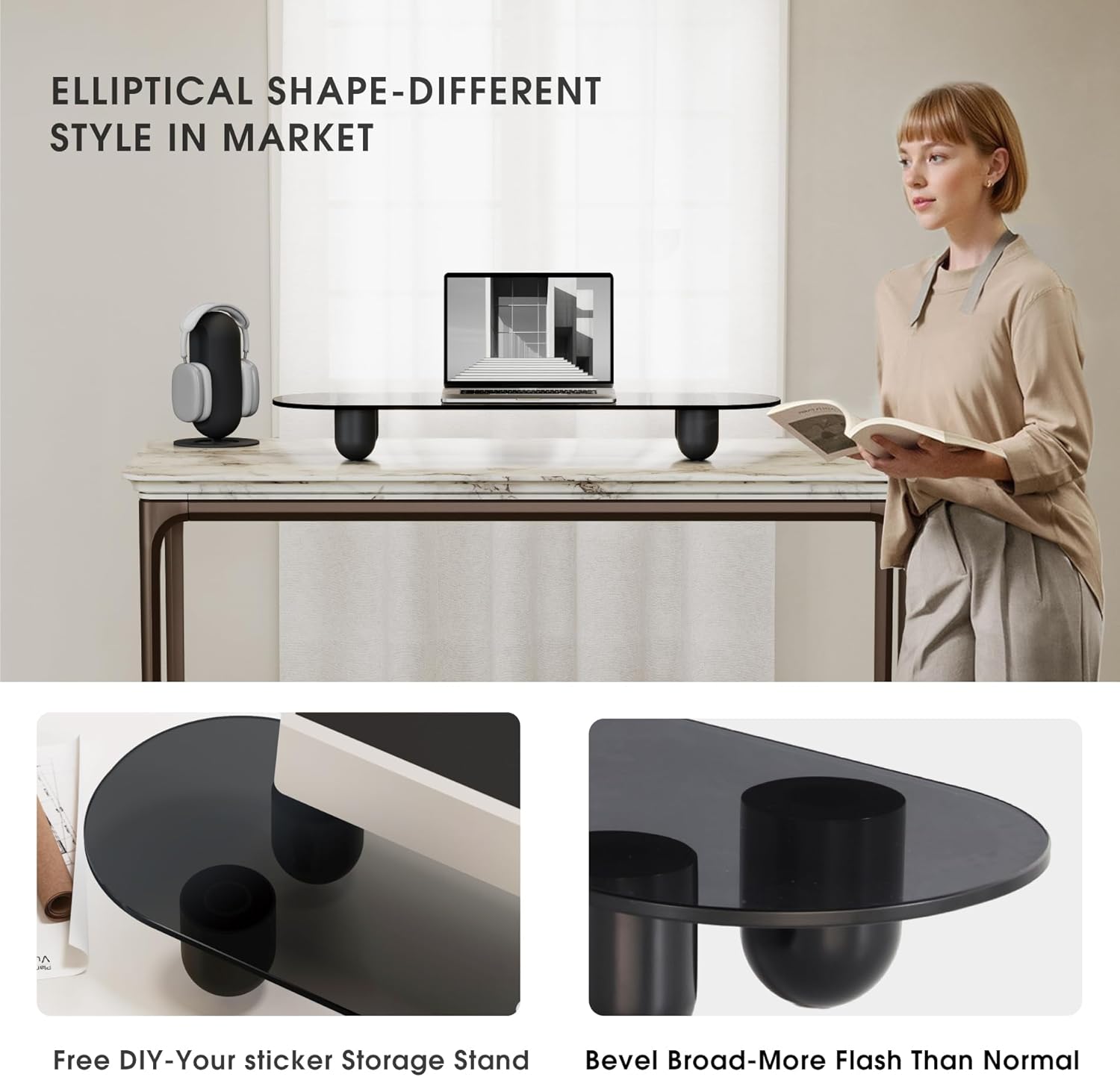 - 【Streamlined Aesthetic】Featuring rounded legs and a smooth oval panel, the Fenge monitor stand delivers minimalist elegance. Its cohesive black match seamlessly integrates into modern offices, gaming setups, or creative spaces.