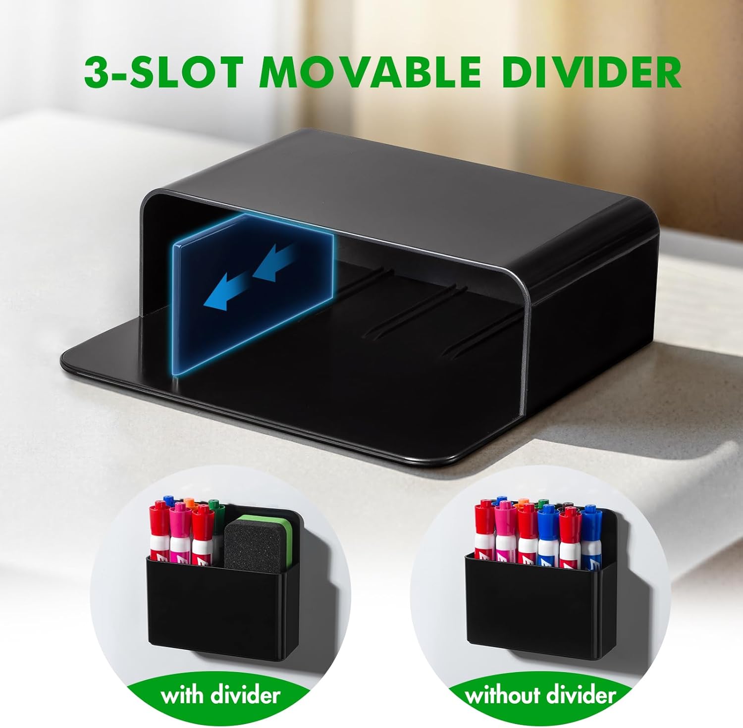 - 🖍️【STRONG MAGNETIC BASE】This dry erase marker holder features a 1.5mm thick rubber magnet on the back, providing enhanced magnetic strength to significantly reduce the risk of slipping and securely adhere to any magnetic surface.