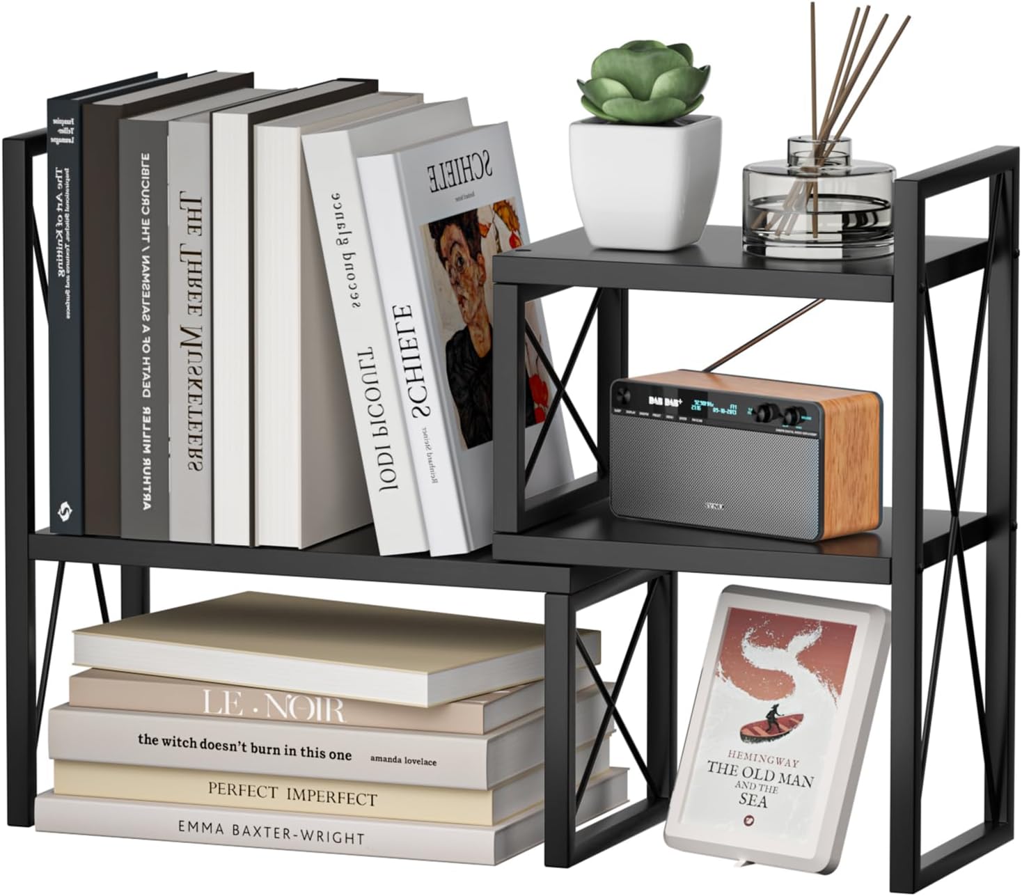 - No More Clutter:Maximize your desktop space with this expandable desk shelf for top of desk. The expandable design creates extra storage space to neatly organize books, office essentials, and decorative accents.All in one compact solution.