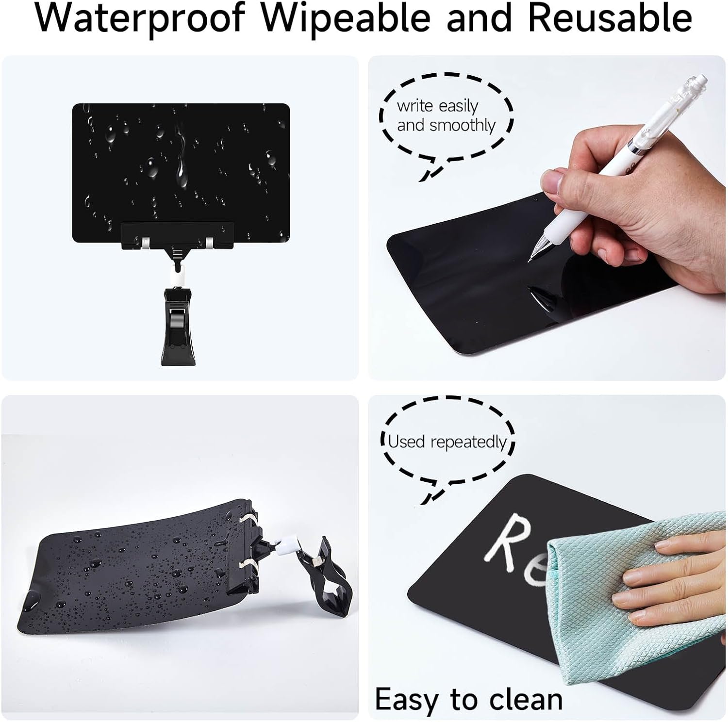 10 Pack Mini Plastic Chalkboard Sign with Clip, Double Sided Rotating Reuse Price Signs for Business Retail Food Clothing Rack Shelf Basket, Clip on Sign Holder (Black)