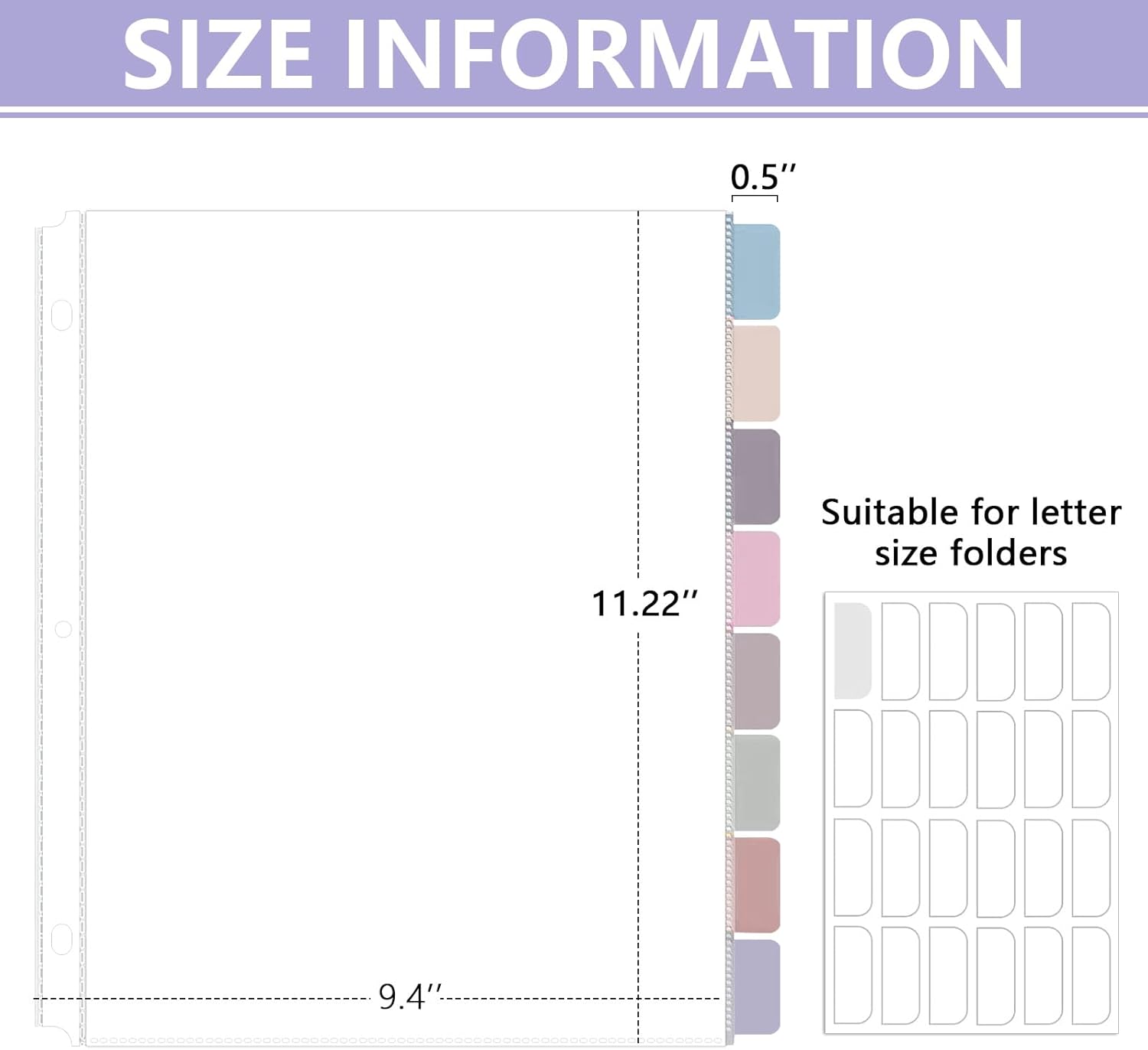 - Colorful index tabs for easy organization: Each set comes with 8 different colored index tabs, allowing you to categorize and quickly locate sections within your documents. The transparent page protectors provide clear visibility, ensuring you can find information at a glance.