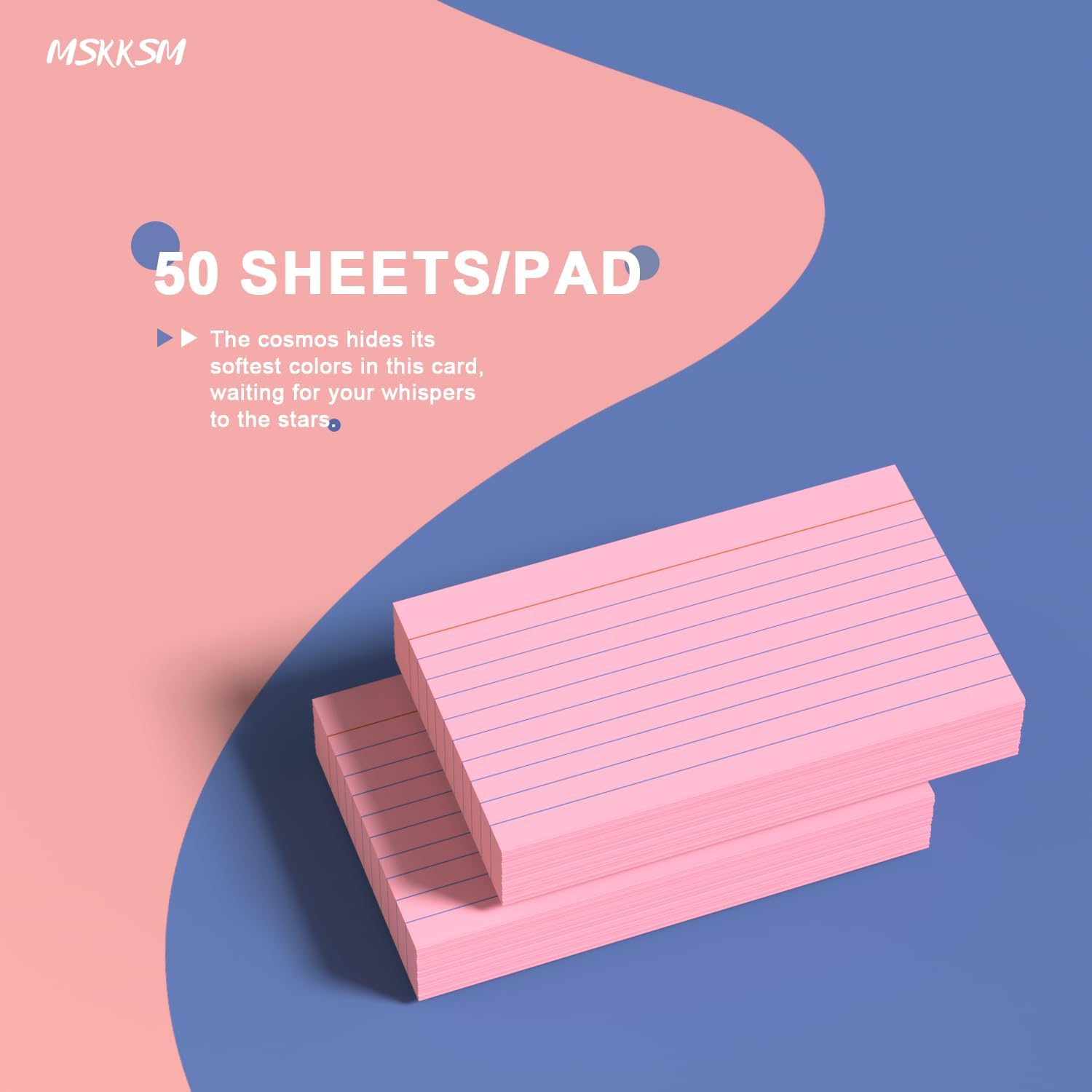 - 【Portable 3x5 Size】The pink note cards are 3 x 5 inches, compact and portable, fitting easily into pocket, backpacks, binders, or desk drawers. Pink flash cards 3x5 liend ideal for students rushing between classes, professionals managing meetings, or retirees keeping grocery lists handy. Carry them anywhere for on-the-go productivity