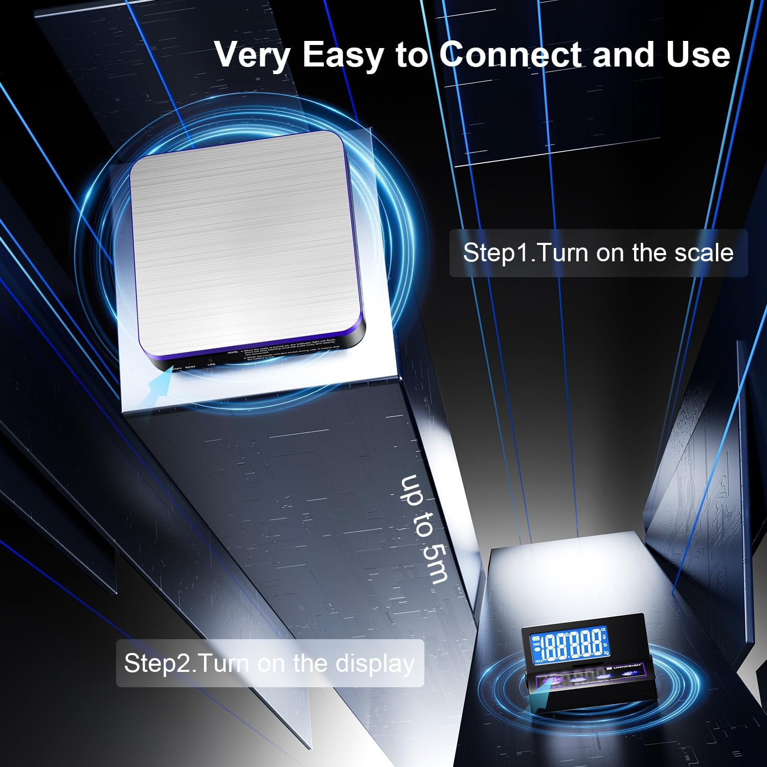 - [Wireless LCD & Stainless Steel Platform]: 5m wireless LCD foldable display with backlight for clear readings in low light. Shipping scale with rugged stainless steel platform, durable for heavy-duty mailing and shipping