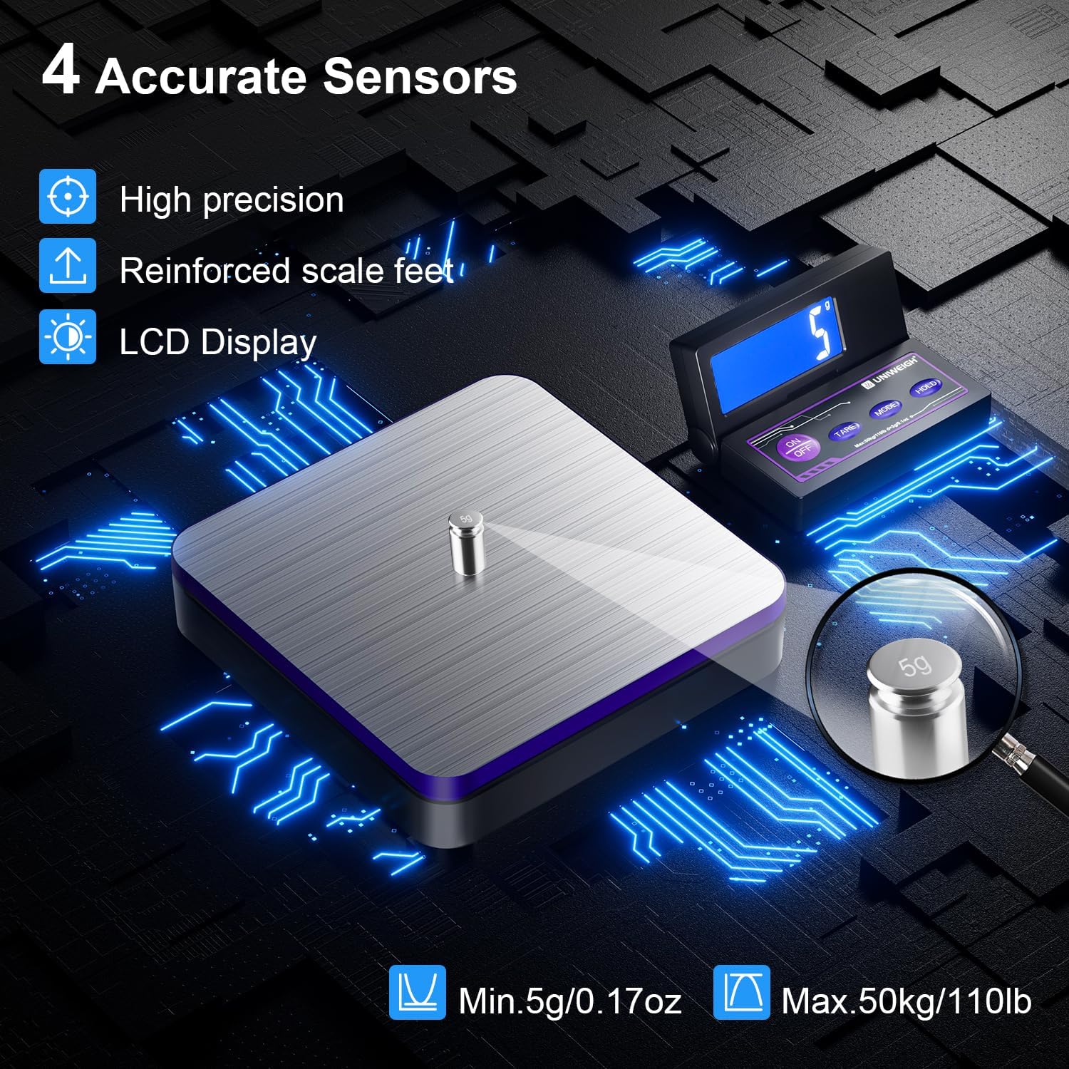 - [High-Precision Postal Scale]: Professional postal scale with ±2g accuracy,measurement from 5g to 110lbs, 5 units (lb:oz/lb/oz/g/kg). Prefect for e-commerce shipping, logistics, post office, weighing letters to large packages