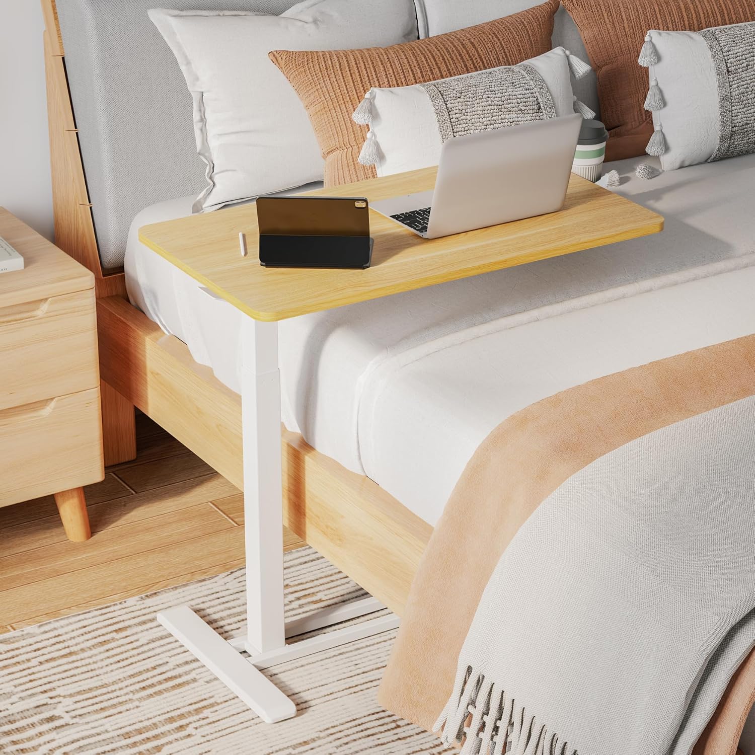 - Portable and Mobile – Designed for convenience, this rolling computer desk is ideal for work or study, whether at home or in the hospital. Its low-profile base with smooth-rolling wheels allows easy movement and tucks under furniture as low as 1.2 inches, saving space and enhancing adaptability.
