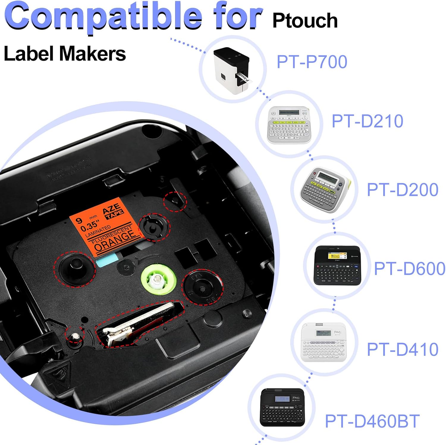 2 Pack Compatible for Ptouch TZe-B21 TZ-B21 TZe TZ Label Tape 9mm 0.35'' Laminated Black on Fluo Orange Label Maker Tape for PT-9700PC PT-1880 PT-1230PC PT-1280 PT-1800 PT-1830