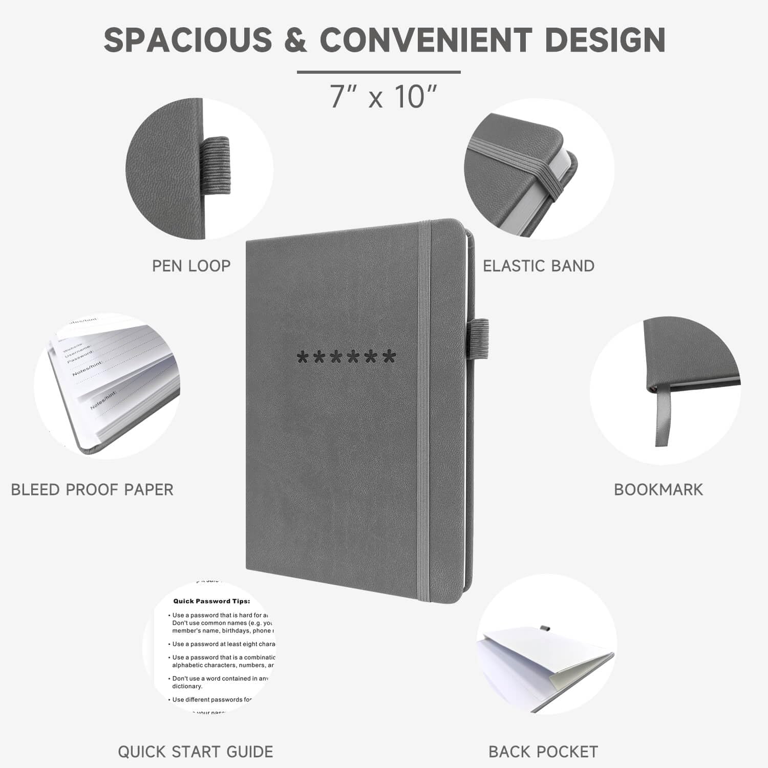 Password Book with Alphabetical Tabs – Hardcover Internet Address & Password Organizer – Password Keeper Notebook for Computer & Website – 7 x 10" Log-in Password Journal w/Thick Paper (Grey)