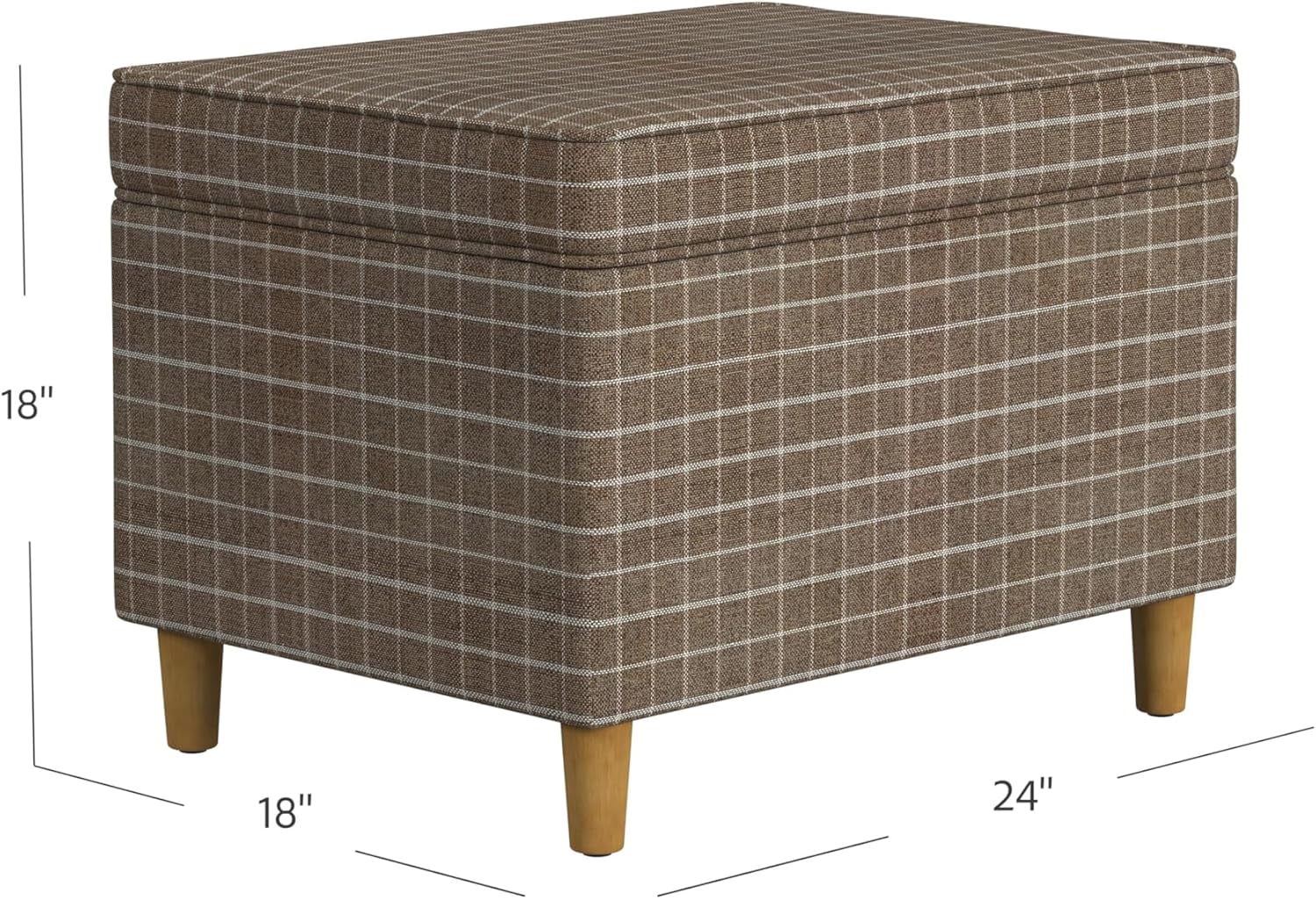 - Timeless & Functional Design β This Spatial Order Rectangular Storage Ottoman features a classic brown windowpane plaid fabric, paired with honey oak-finish wooden legs, bringing a warm and sophisticated look to any space.