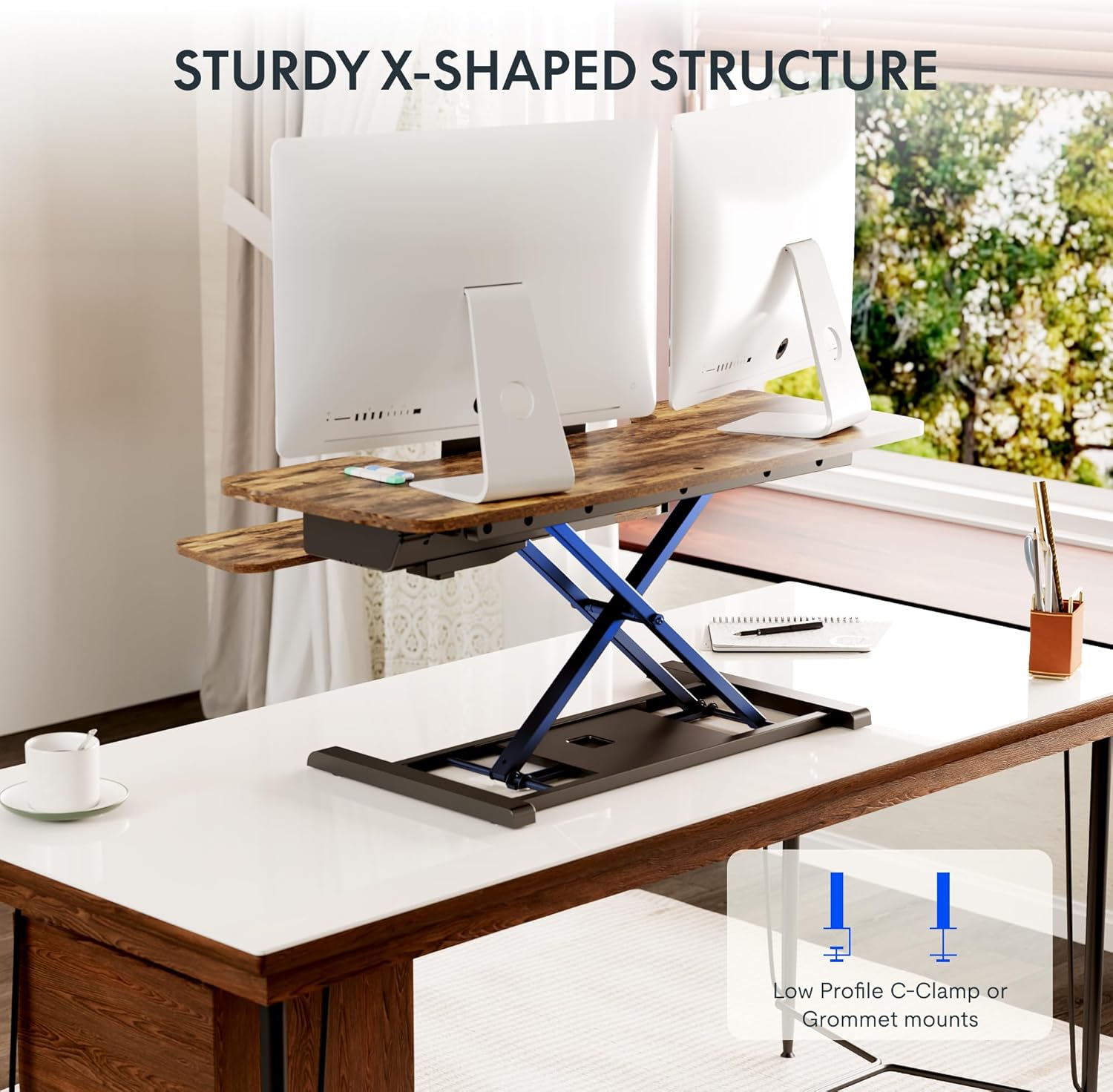 FLEXISPOT 40 inch Electric Motor Desk Converter, Sit to Stand Monitor and Laptop Workstation, Height Adjustable Riser with Wide Keyboard Tray, Rustic Color