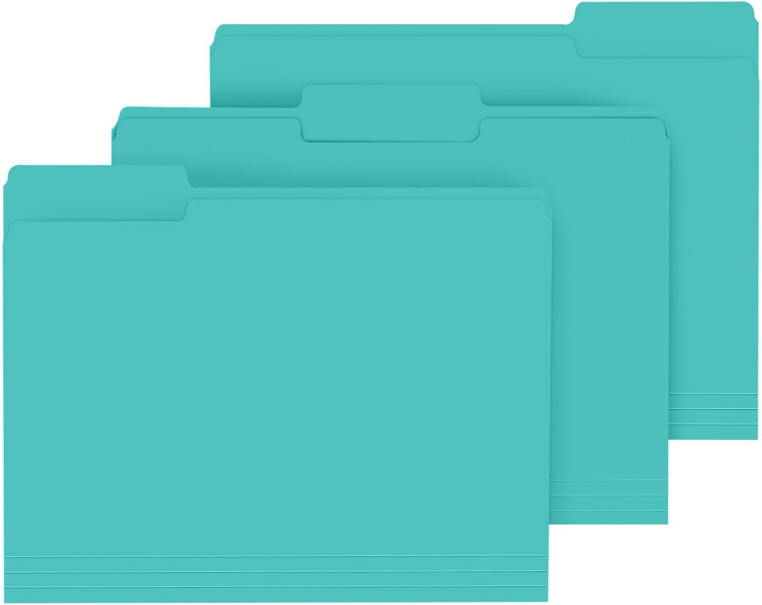 File Folder, PANDRI 120 Pack File Folder, 1/3 Cut Tab, Letter Size, Filing Folder for Office School Business, Aqua