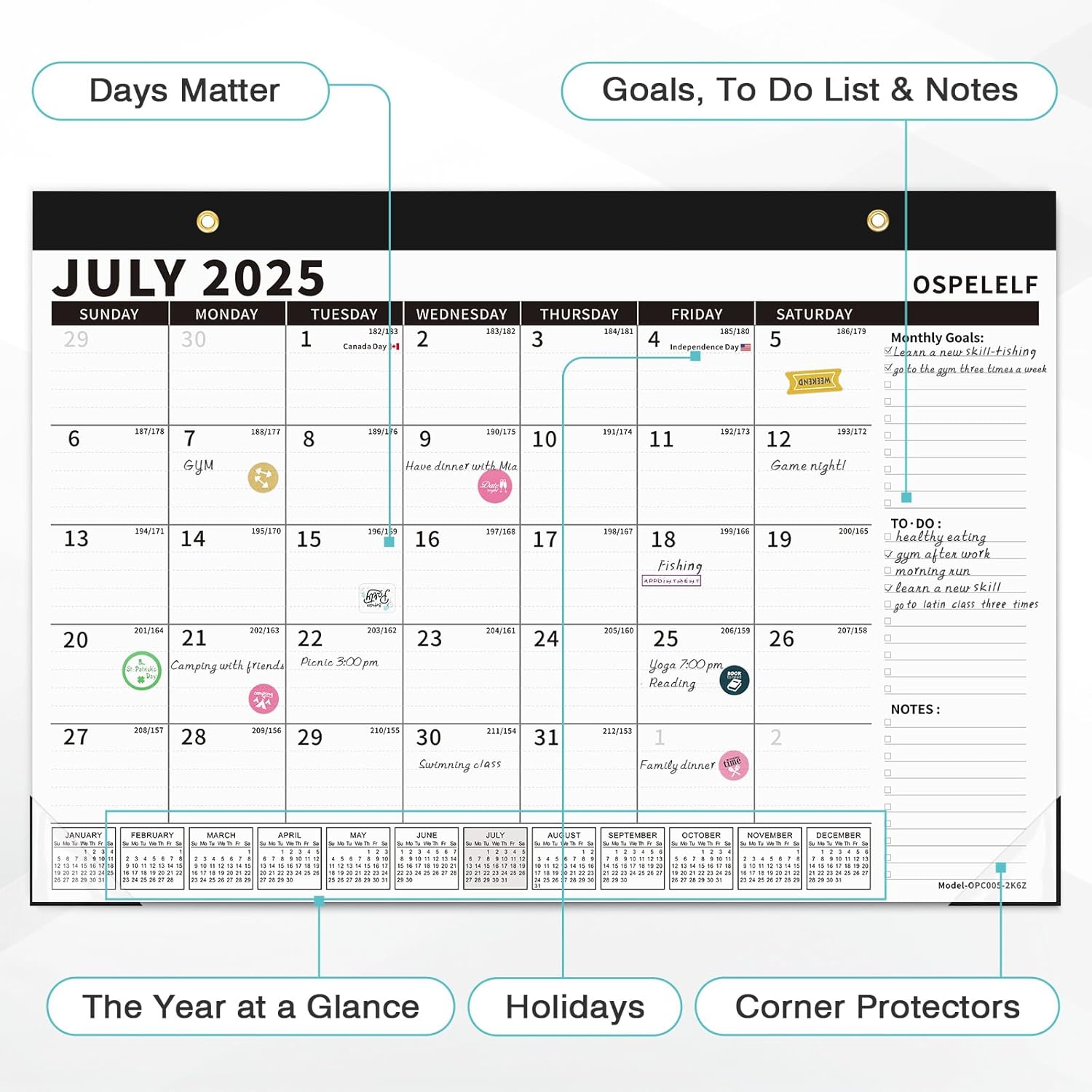 Ospelelf Magnetic Calendar 2025-2026 for Refrigerator, Desk Wall Calendar, July 2025 to December 2026, Monthly Large Planner Pad with Plastic Cover 17" X 12" Black