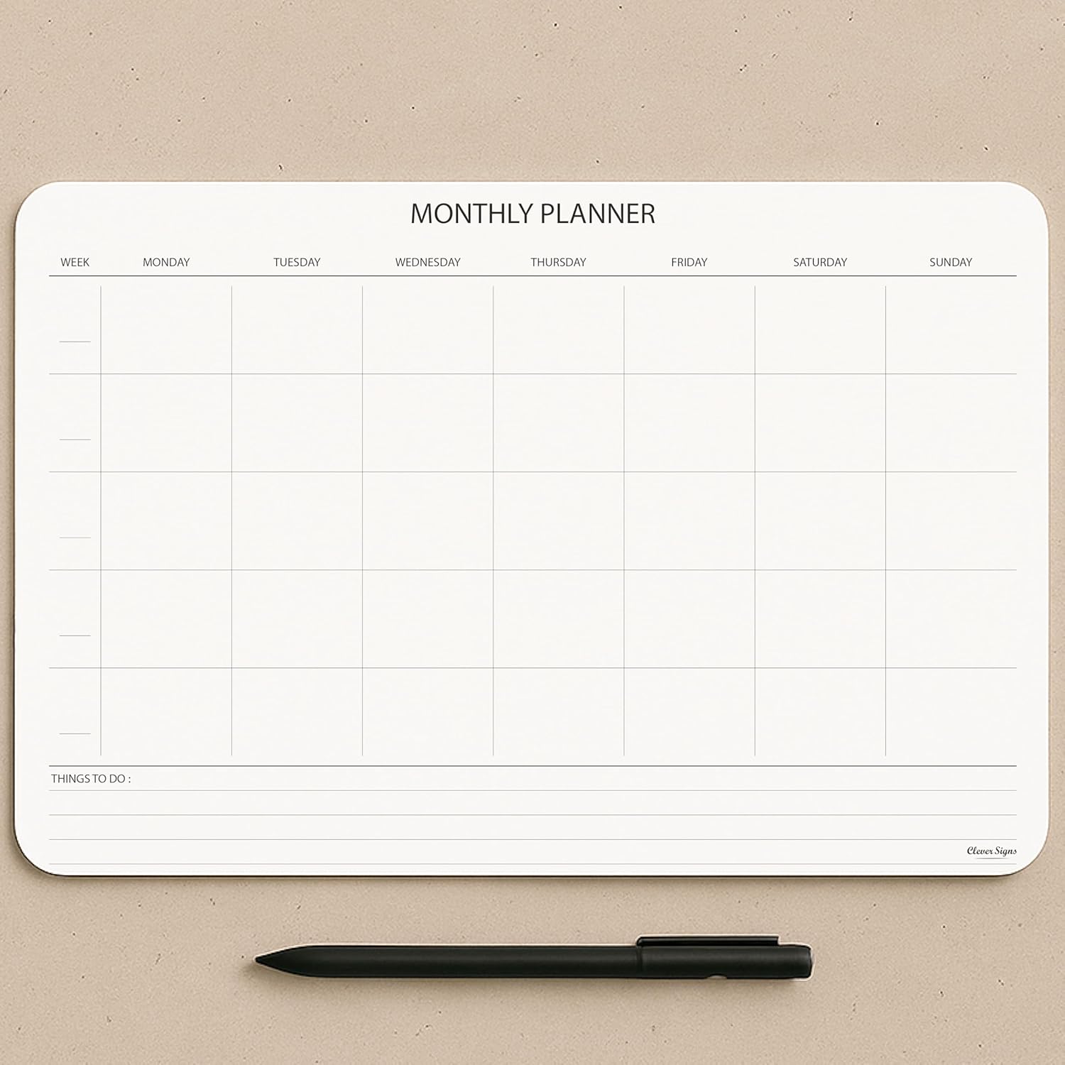 • CONVENIENT FORMAT: Sheets are designed to be clear and easy-to-use. The hard back cardboard support provides a sturdy surface for writing. CLEVER SIGNS Undated Monthly Planner Notepad measures 8,3 X 11,7 inches and is made with high-quality thick paper.