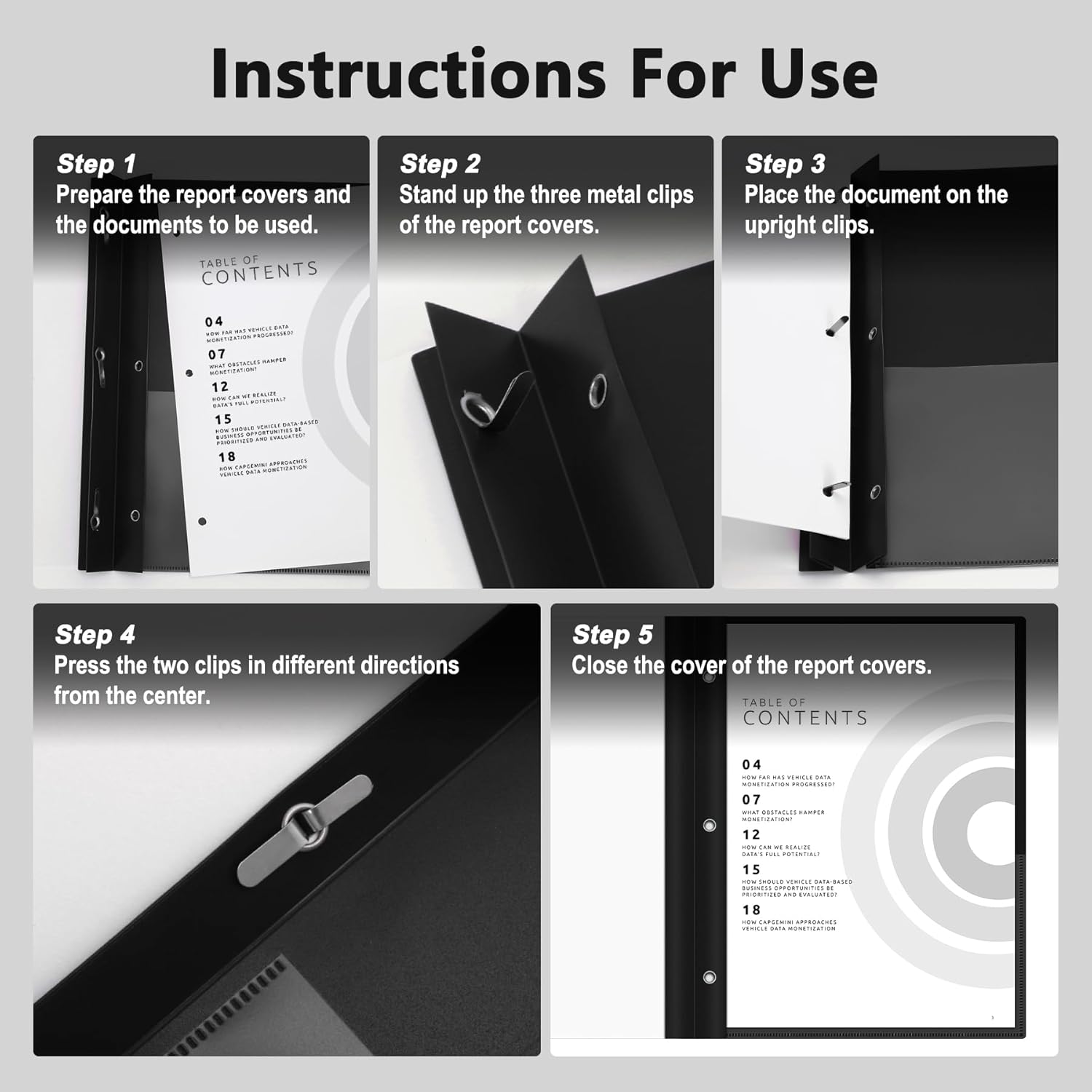 - Clear Front Report Cover with Black Back: Quickly identify and access your documents without opening the cover while the black back provides professional and stylish look, perfect for business presentations and academic, meetings, or interviews where fast retrieval matters
