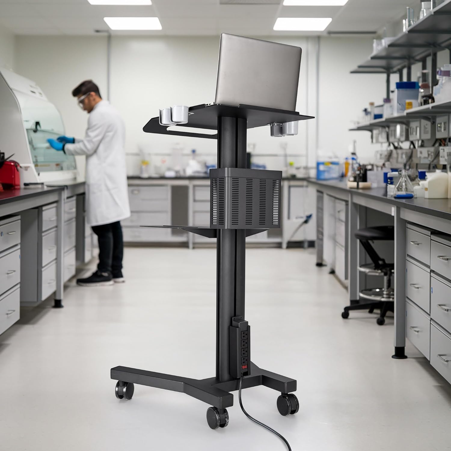 AW Mobile Laptop Cart Medical Rolling PC Stand Computer Workstation on Wheels with Handle 220 Lbs Capacity CPU Printer Power Strip Holder for Lap School Office Salon Spa Dental