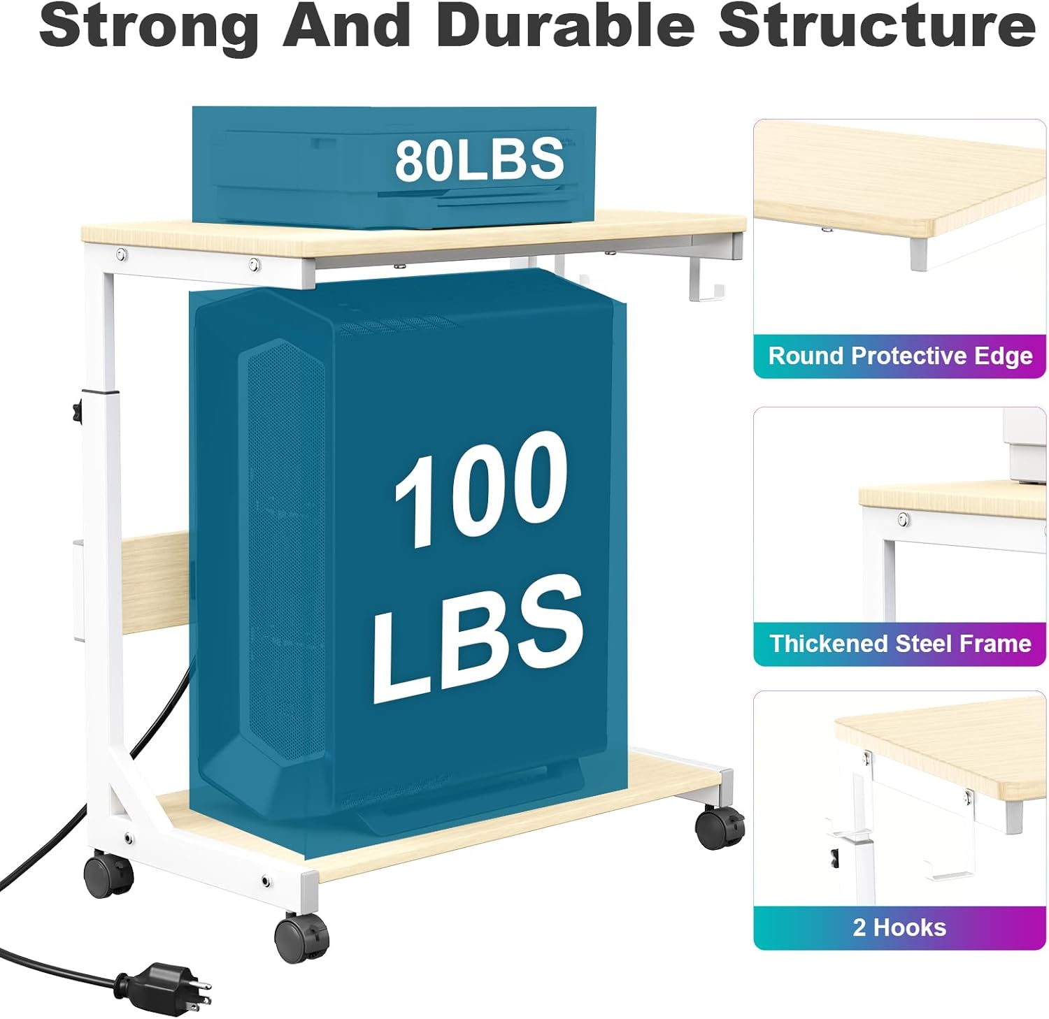 - Pc Tower Stand With Charging Station: This Mobile PC Standing with dual 120V/12A outlets and dual USB ports can power your laptop, smartphone, printer, tablet or any electronic device. Great for keeping an organized workspace. Plus, the PC Tower Rack doubles as a side table to provide additional power for your desk lamp