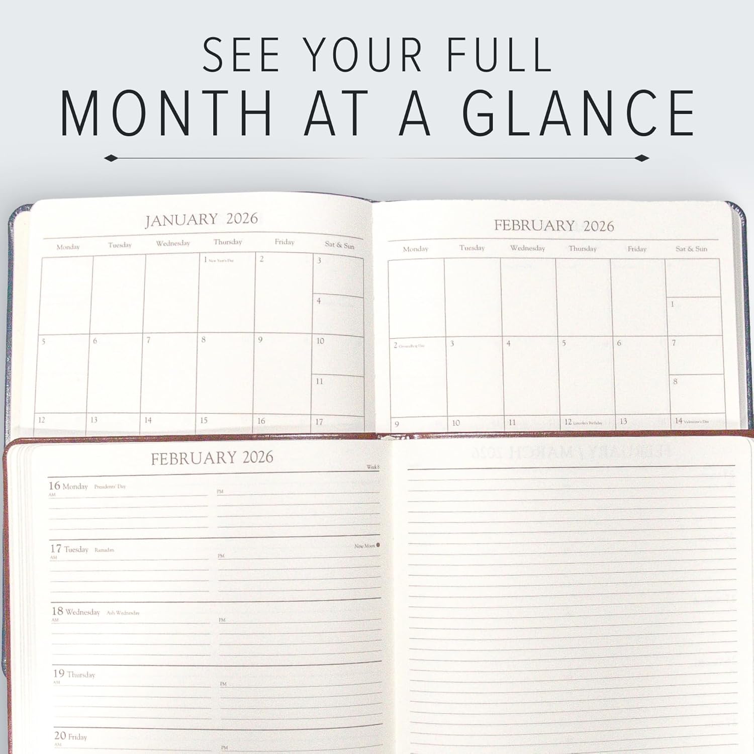 - ๐ ๐จ๐ป๐ถ๐พ๐๐ฒ ๐พ๐๐ฎ๐น๐ถ๐๐ ๐๐ผ๐ ๐ฐ๐ฎ๐ป ๐ณ๐ฒ๐ฒ๐น: Unlike generic planners, our academic planners are handcrafted in Bar Harbor, Maine, using the finest bonded leather for weekly planners to last a lifetime. Gorgeous with 208 pages to make sure you have plenty of space for planning. Also giving you an expensive look that will be the envy of everyone. With gold-gilded edges and high-quality materials, our planners stand out in durability and elegance
