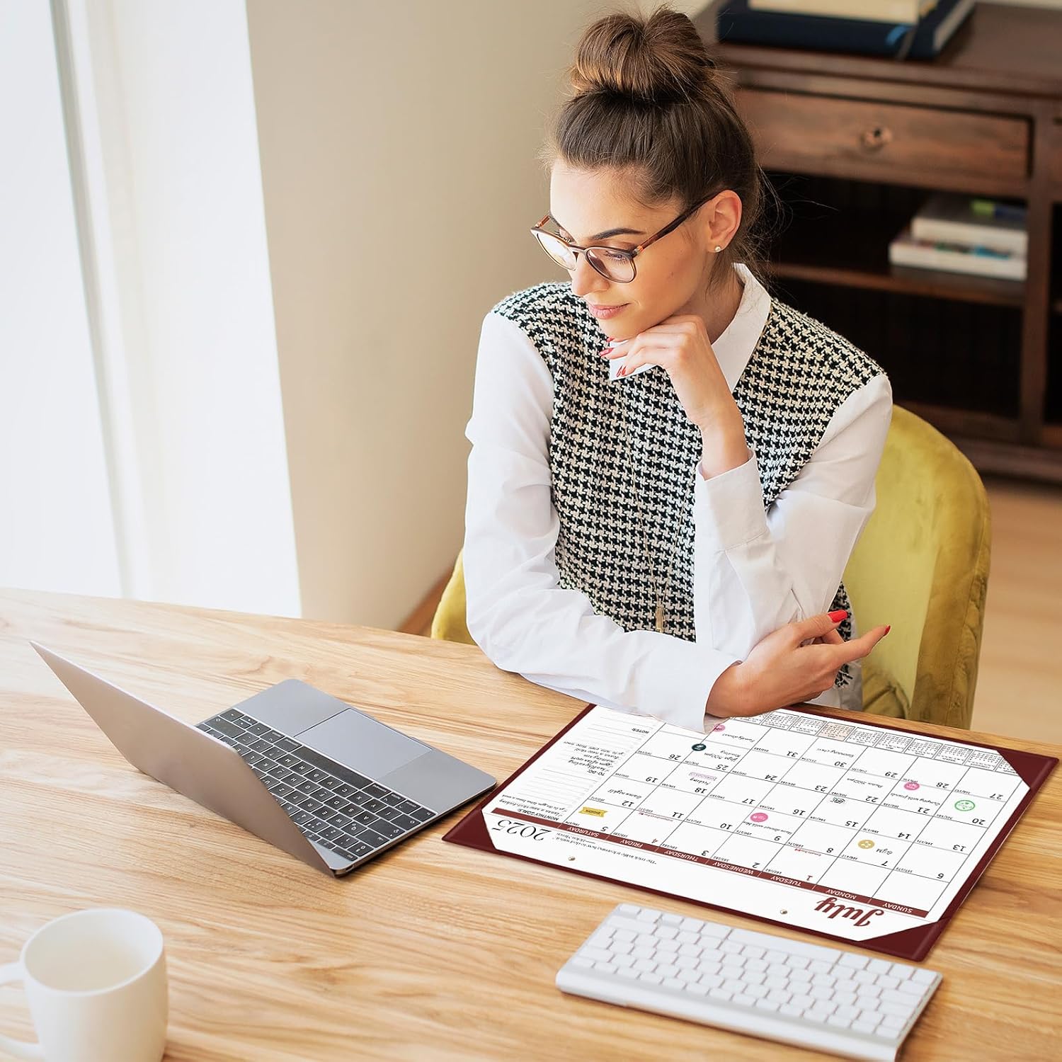 - Monthly Desk Calendar with Stickers: One month per page layout help you organize your monthly plans and goals. The calendar set includes planning stickers. A variety of planning stickers can also add some interest to the calendar.