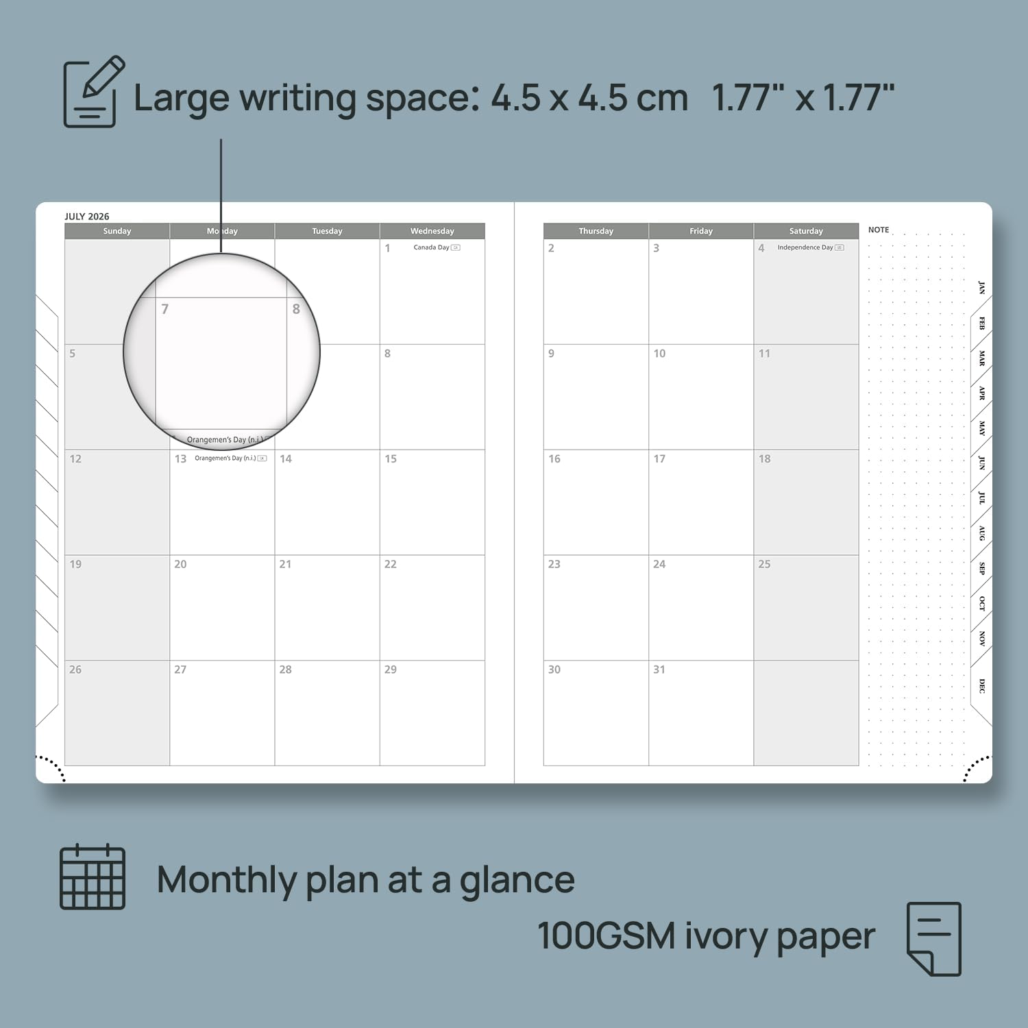 - EXTRA FUNCTION PAGES: This 2026 weekly planner also contains "2026-2027 Year Planner " Page + "2026 Holiday Reference & Calendar" Page + Monthly Expenses Page+ Contact & Password Pages + 8 Dotted Notes Pages for jotting down your ideas, thoughts or any other happy things in detail.