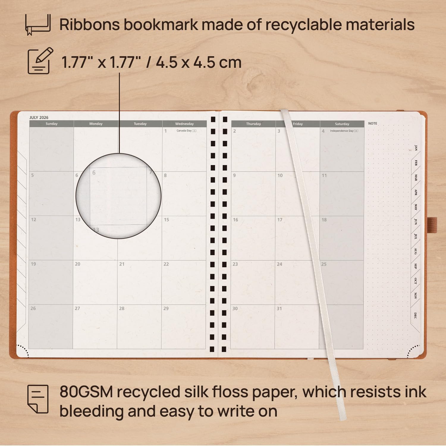 - 100% RECYCLED PLANNER:The cover and inner pages of this 2026 planner are made from renewable paper pulp imported from Italy. With a commitment to the protection of the earth, this planner helps to contribute to the sustainability of our environment.