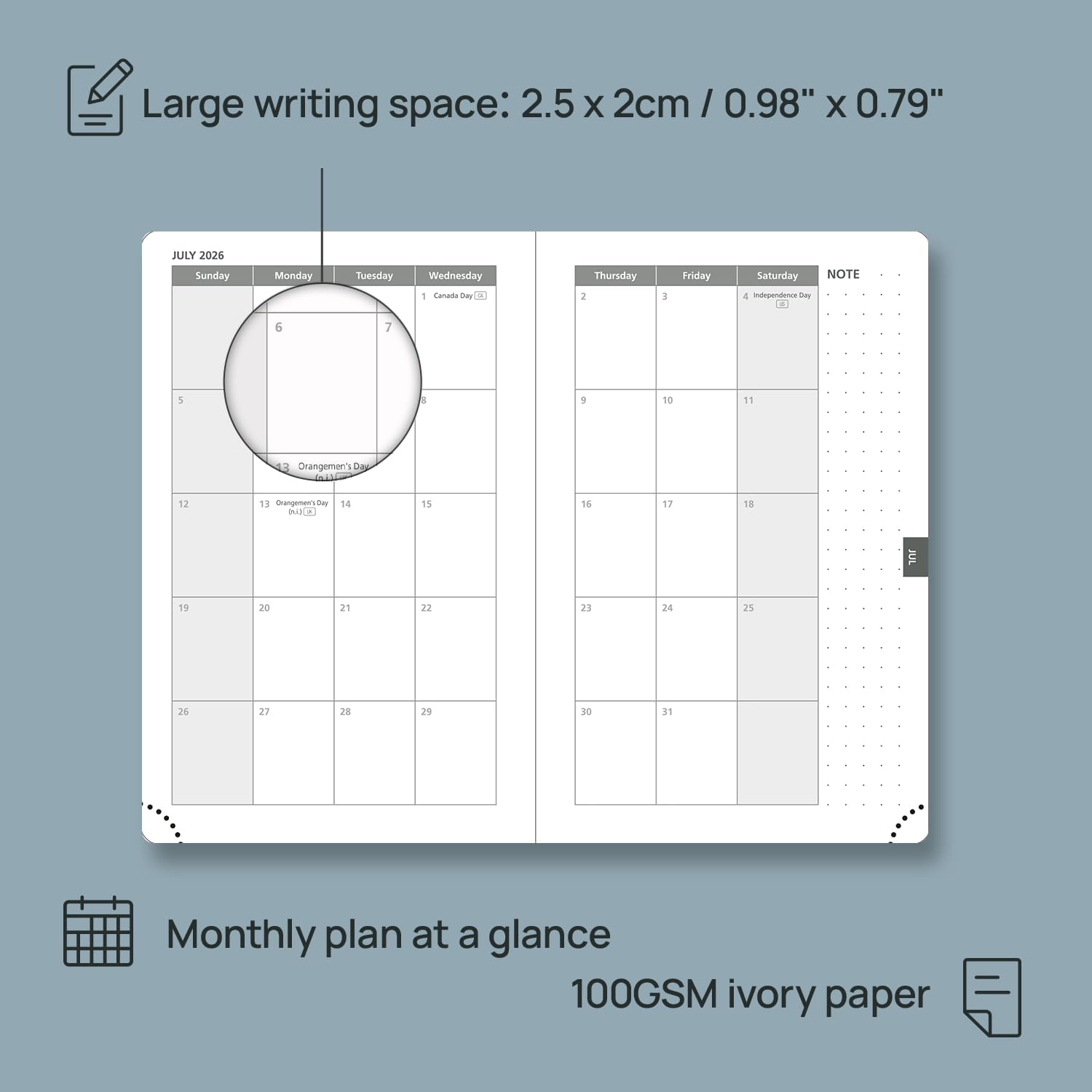 - EXTRA FUNCTION PAGES: This 2026 weekly planner also contains "2026-2027 Year Planner " Page + "2026 Holiday Reference & Calendar" Page + Monthly Expenses Page+ Contact & Password Pages + 8 Dotted Notes Pages for jotting down your ideas, thoughts or any other happy things in detail.
