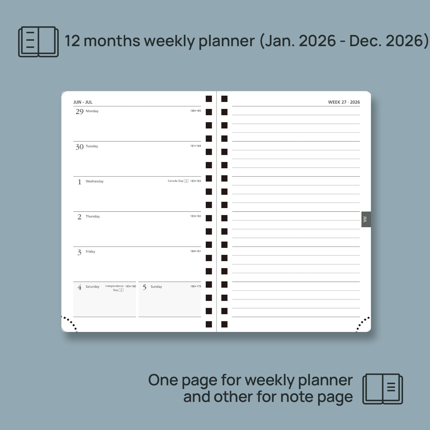 • ONE PAGE PER WEEK & HORIZONTAL LINE PAGE: Measuring pocket size-4''x 6.25'', this weekly planner (Jan. 2026 - Dec. 2026) is ensured with a generous weekly page layout and line notes pages for each week.