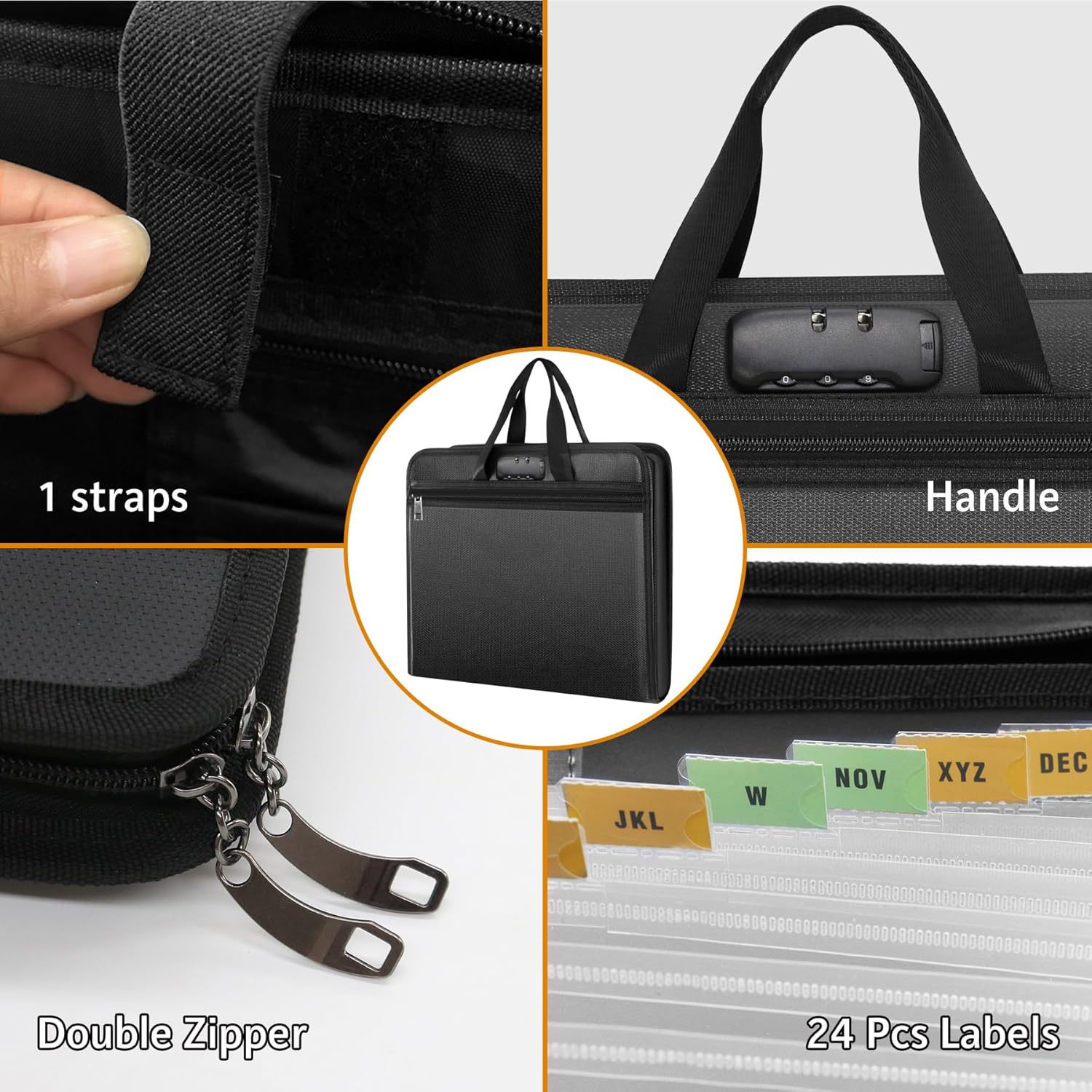 - Secure Password Protection – This multi-layer portable fireproof accordion file organizer features a password lock for enhanced document security, along with a convenient side zippered pocket for extra storage