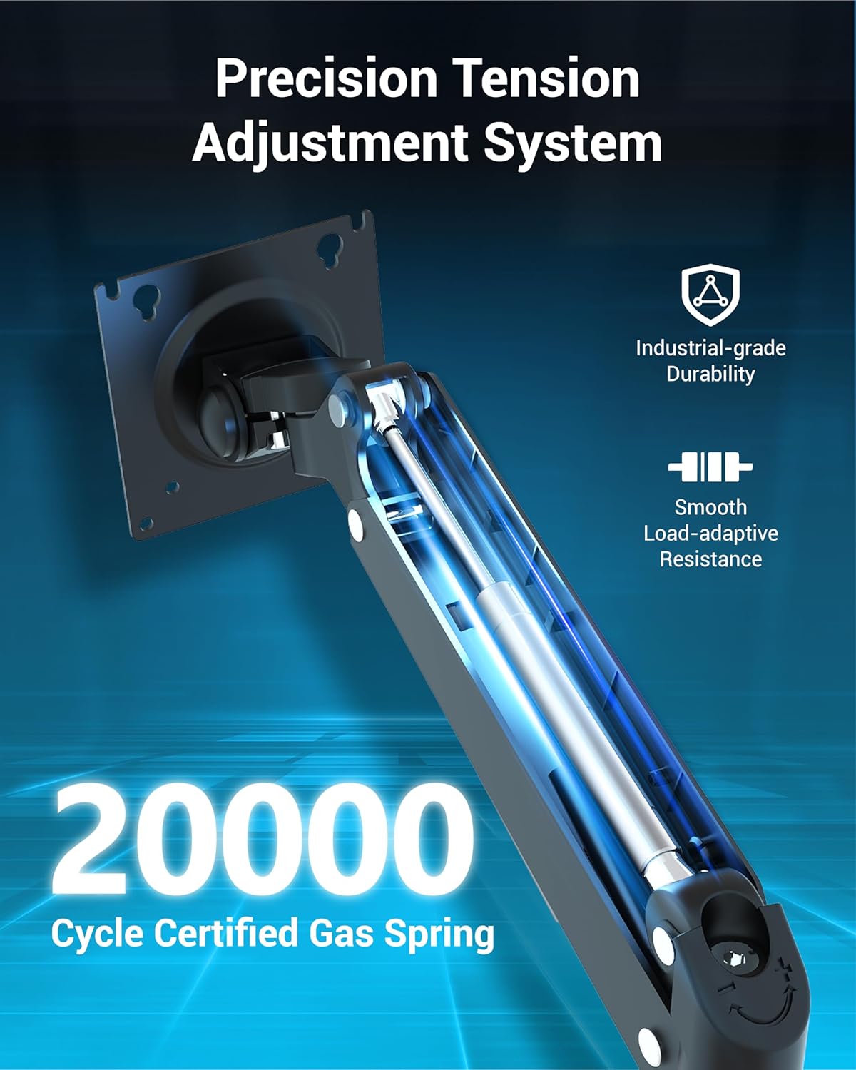 - ăIndustrial-Grade Durabilityă Equipped with premium gas springs to eliminate rebound, our 2 monitor desk mount delivers ultra-smooth, effortless screen adjustmentsâfar surpassing standard stands. Rigorously tested over 20,000+ cycles, it guarantees rock-solid stability at every extension angle.