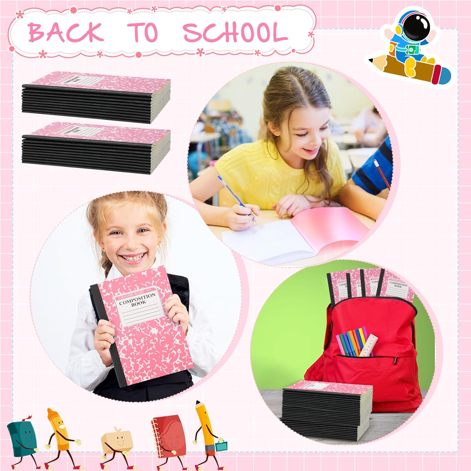 - Sufficient Quantity: you will get 100 pack composition notebooks bulk in pink colors, measuring approximately 8.2 x 5.5 inches; The classic composition will safeguard your important notes, and the sufficient quantity and colors will meet your needs for use and replacement