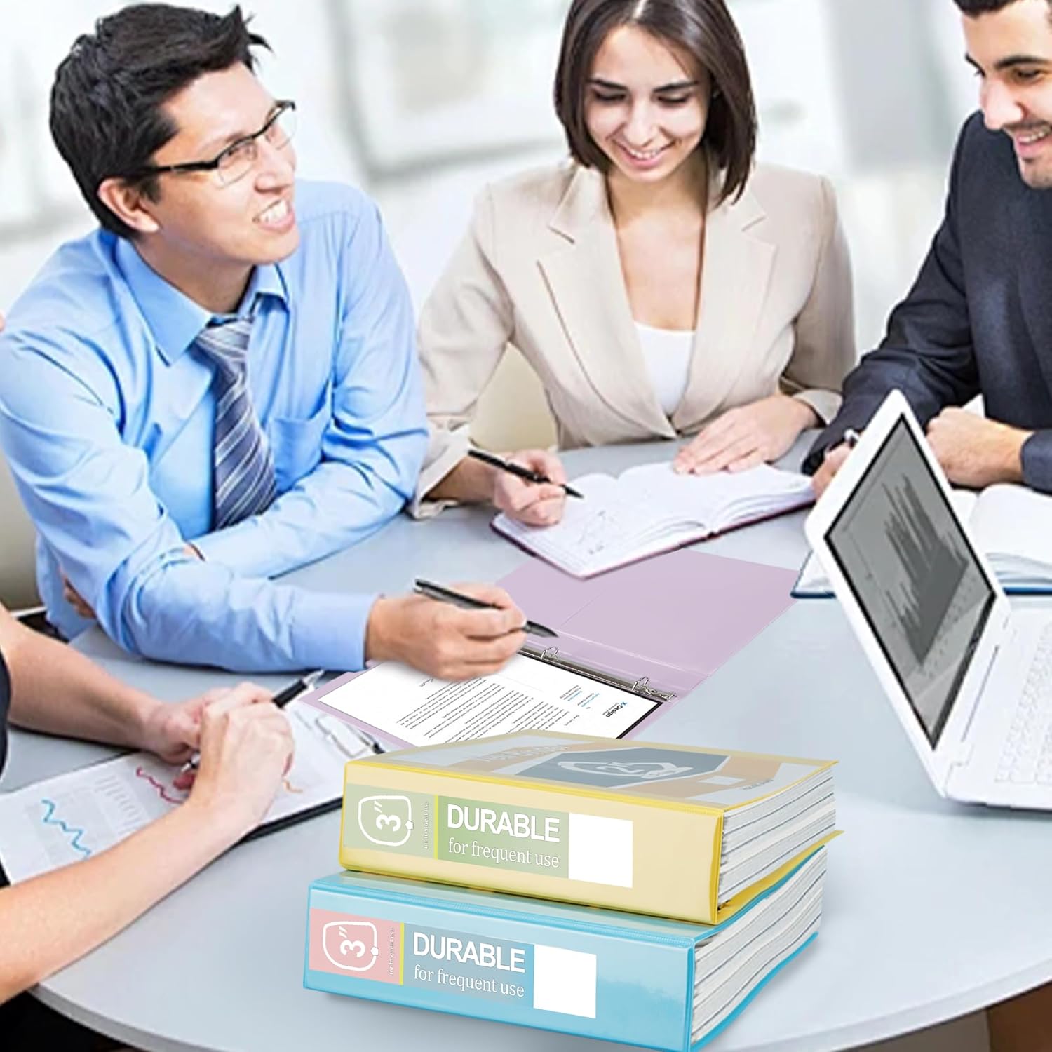 Zzrywuty Durable 3 Ring Binder, 3 Inch, Economy 4 Pack, Each Holds 675 Pages, D-Ring Presentation View Binders for Office, School, Home (Pastel Assortment)
