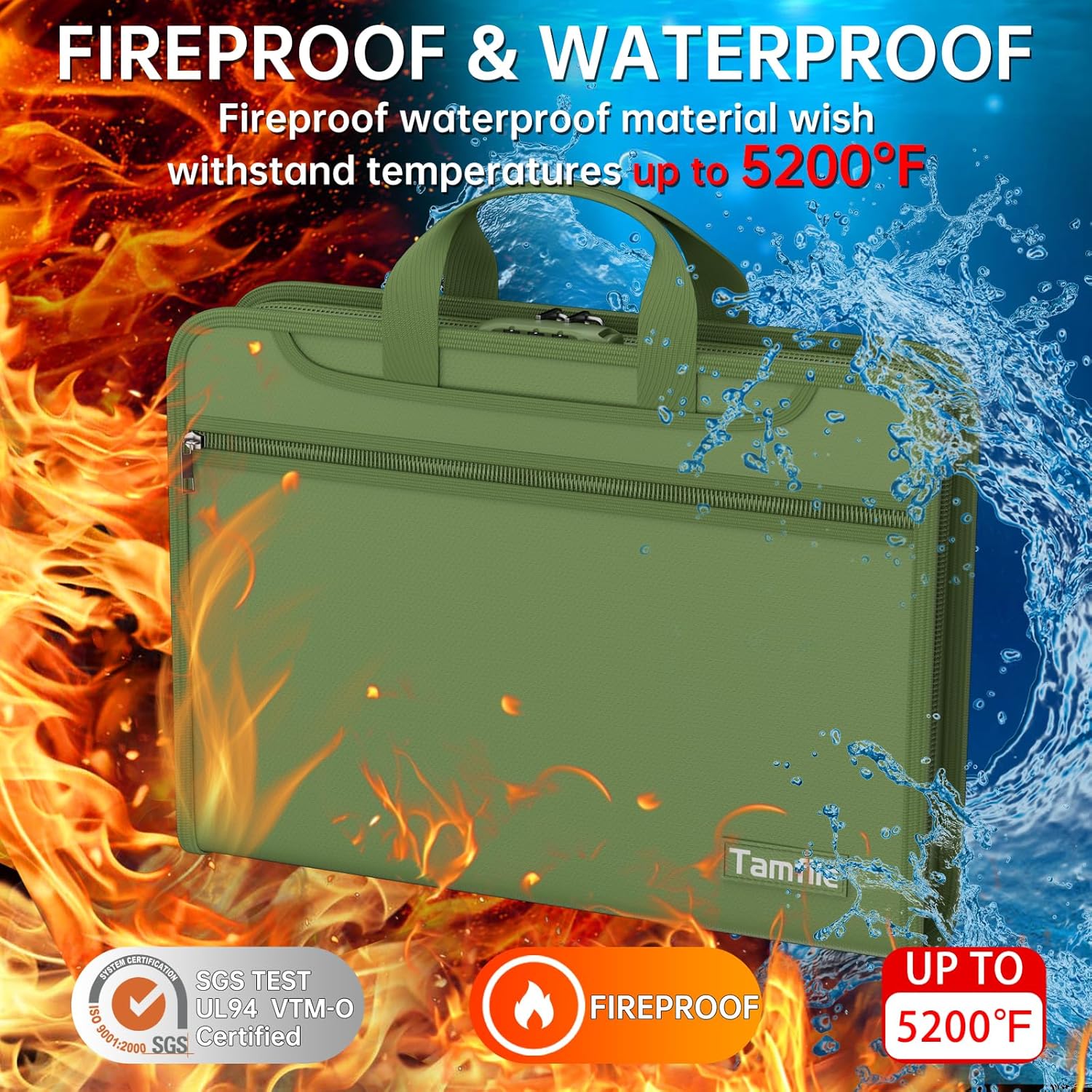 - [Protect valuable documents for fire] 5200℉ Fireproof Thickened Accordion File Organizer is made of high-quality silicone glass fiber fabric with fireproof and waterproof properties, passing SGS testing (UL94 certification). Provide high quality fireproof protection, giving you precious rescue time to transfer your valuable documents.