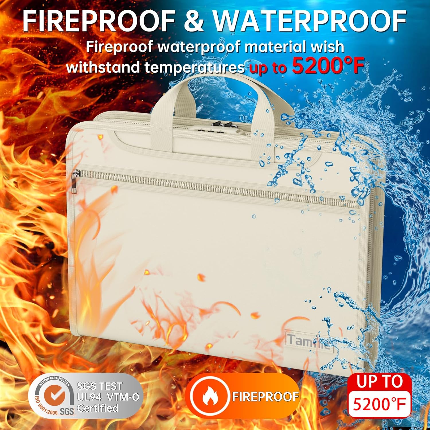 - [Protect valuable documents for fire] 5200℉ Fireproof Thickened Accordion File Organizer is made of high-quality silicone glass fiber fabric with fireproof and waterproof properties, passing SGS testing (UL94 certification). Provide high quality fireproof protection, giving you precious rescue time to transfer your valuable documents.